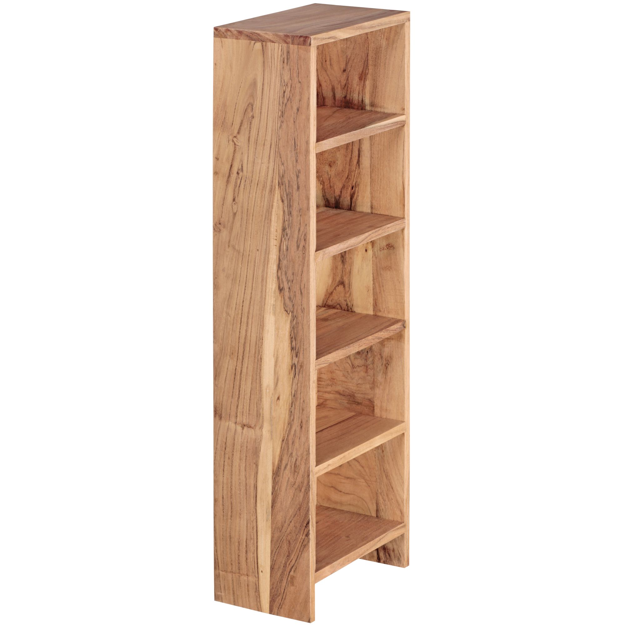 Entdecken Sie das elegante CD Regal MUMBAI aus massivem, naturbelassenem Akazienholz, ideal für ca. 100 CDs mit 5 Fächern und einer Fachhöhe von 15 cm. Perfekt zur stilvollen und einfachen Aufbewahrung Ihrer CD-Sammlung.