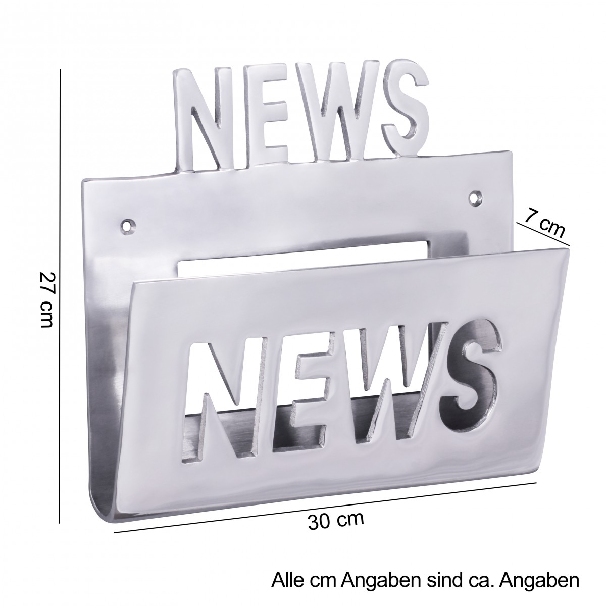 Organisieren Sie Ihre Dokumente effizient und verschönern Sie Ihre Wand mit diesem designorientierten Wand-Prospekthalter aus silbernem Aluminium. Die hochwertige Verarbeitung und der Schriftzug 'News' verleihen einen modernen, ansprechenden Look.