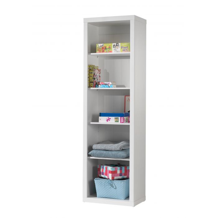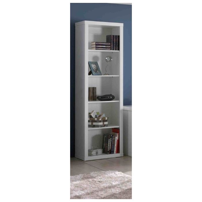 Das große Regal zu Programm Robin bietet viel Stauraum für Bücher oder Dekorationsgegenstände. Der Korpus ist aus 18mm starkem MDF, weiß lackiert. Die dicke Deckel- und Sockelplatte, sowie die seitlichen Blenden erzeugen eine wertige Rahmenoptik. Die 4 Fachböden in weiß Dekor sind verstellbar. Beschläge aus Metall. Der Artikel ist zerlegt, mit Aufbauanleitung zur einfachen Selbstmontage. Stellfläche: B: 60 H: 204 T: 40 cm.