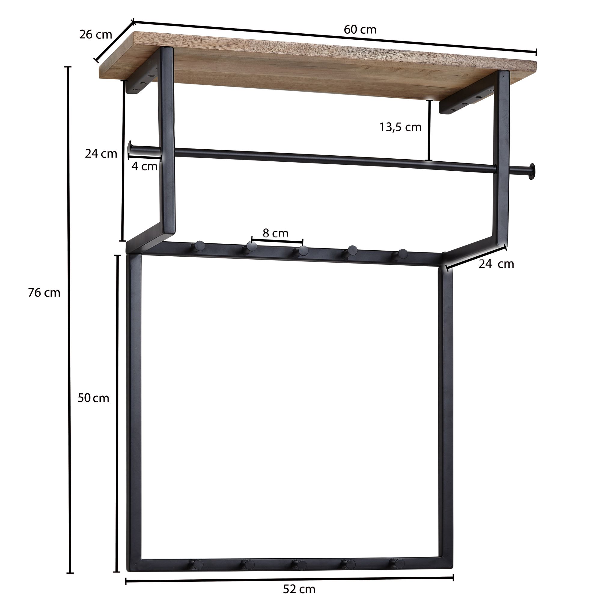 Produktinformationen "Wandgarderobe Mango Massivholz Braun/Schwarz | 60x76x26 cm | mit 10 Haken und Ablage"