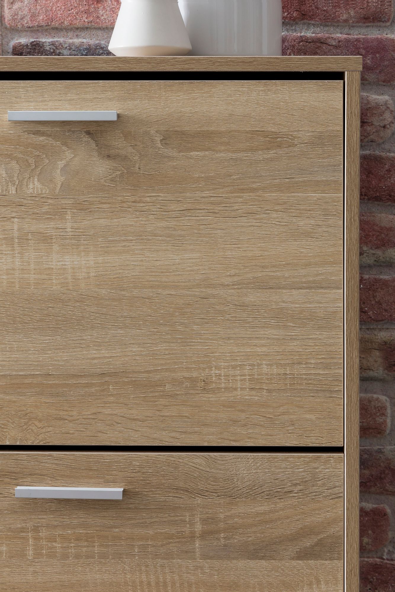 Schuhschrank Holz Sonoma | 120x81x24 cm | 4 Fächer, Aluminiumgriffe