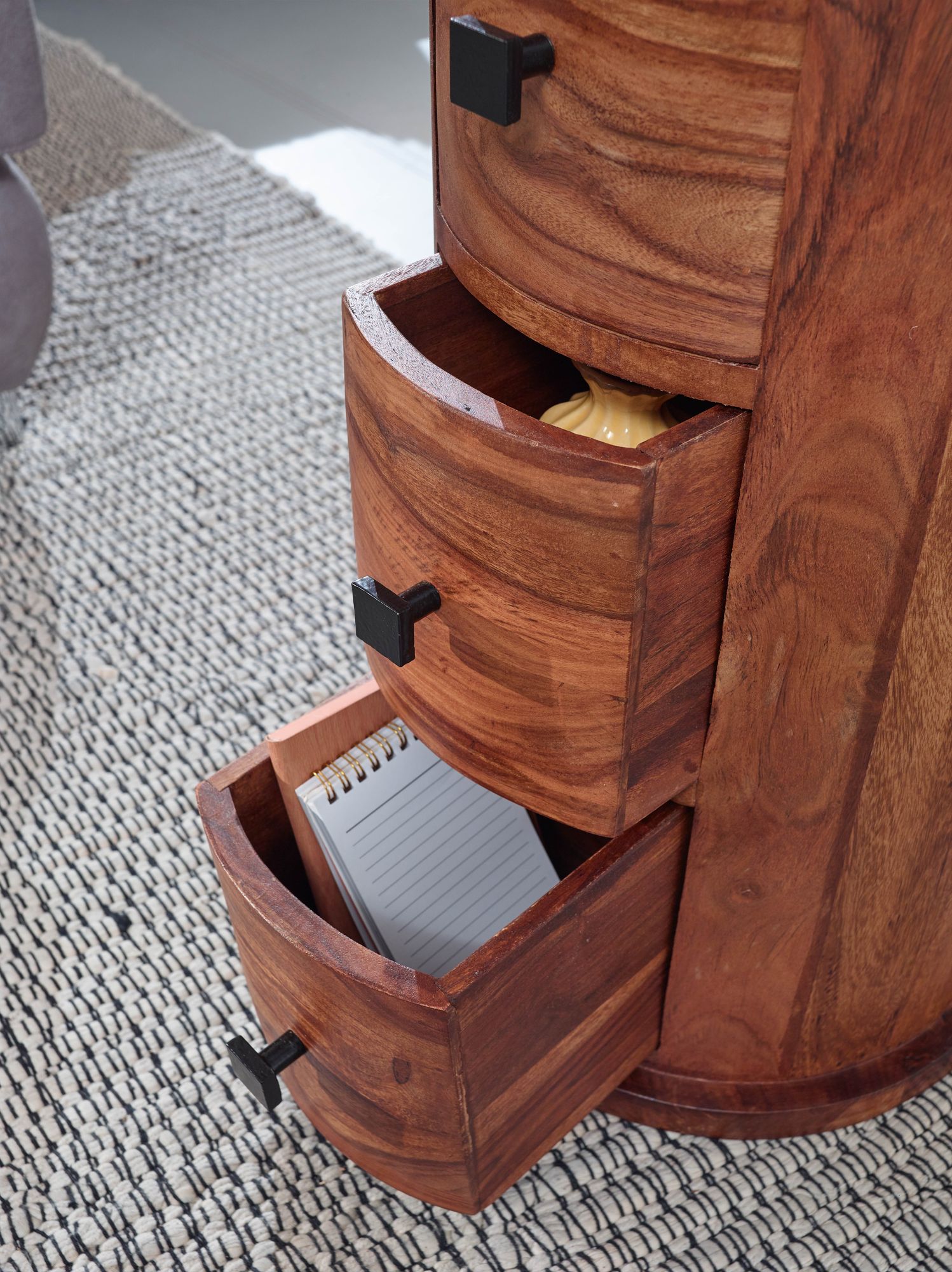 Design Sideboard Sheesham Massivholz Braun | 35x65x35 cm | 3 Schubladen