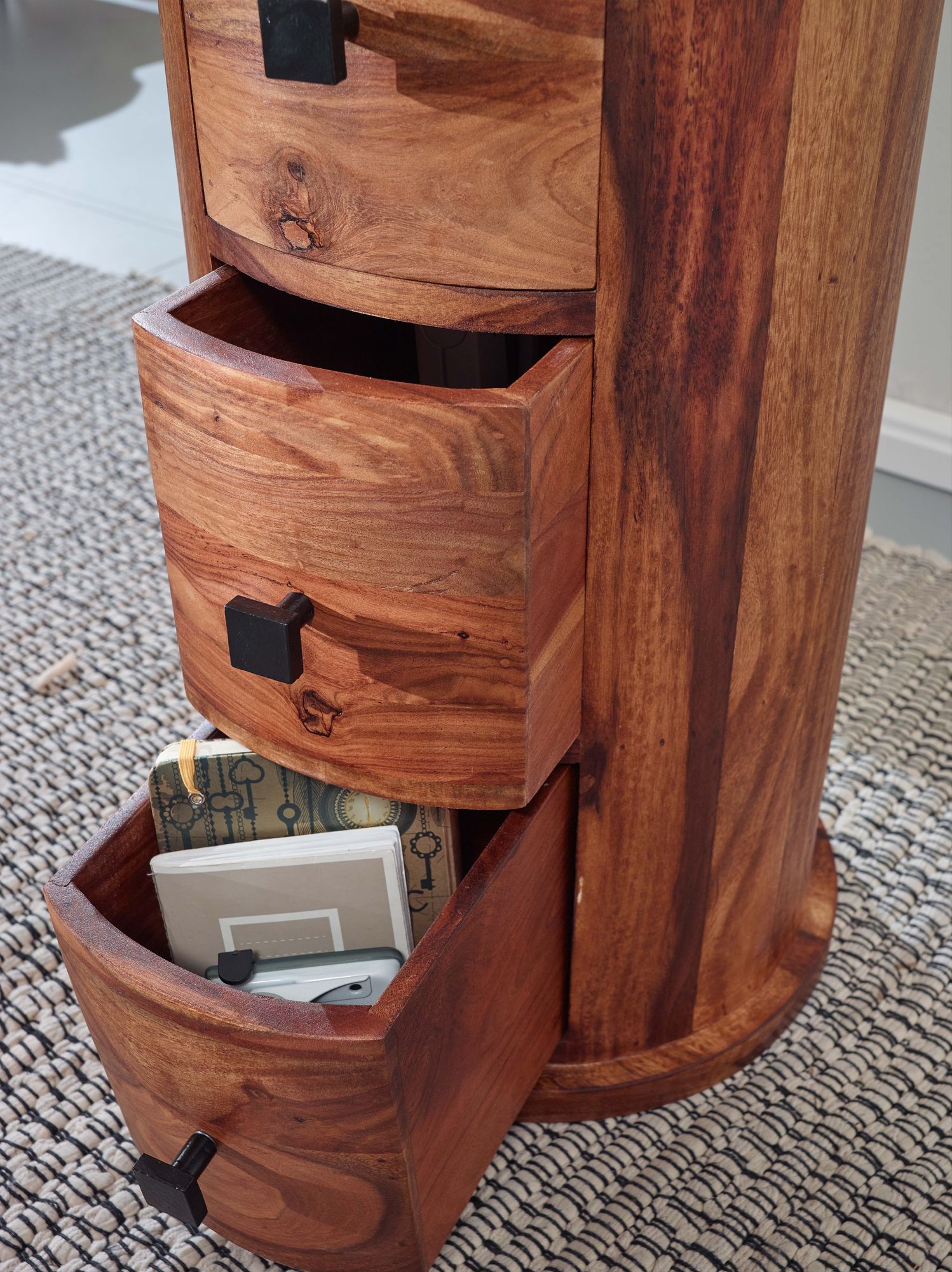 Produktinformationen "Design Sideboard Sheesham Massivholz Braun | 35x85x35 cm | 4 Schubladen"