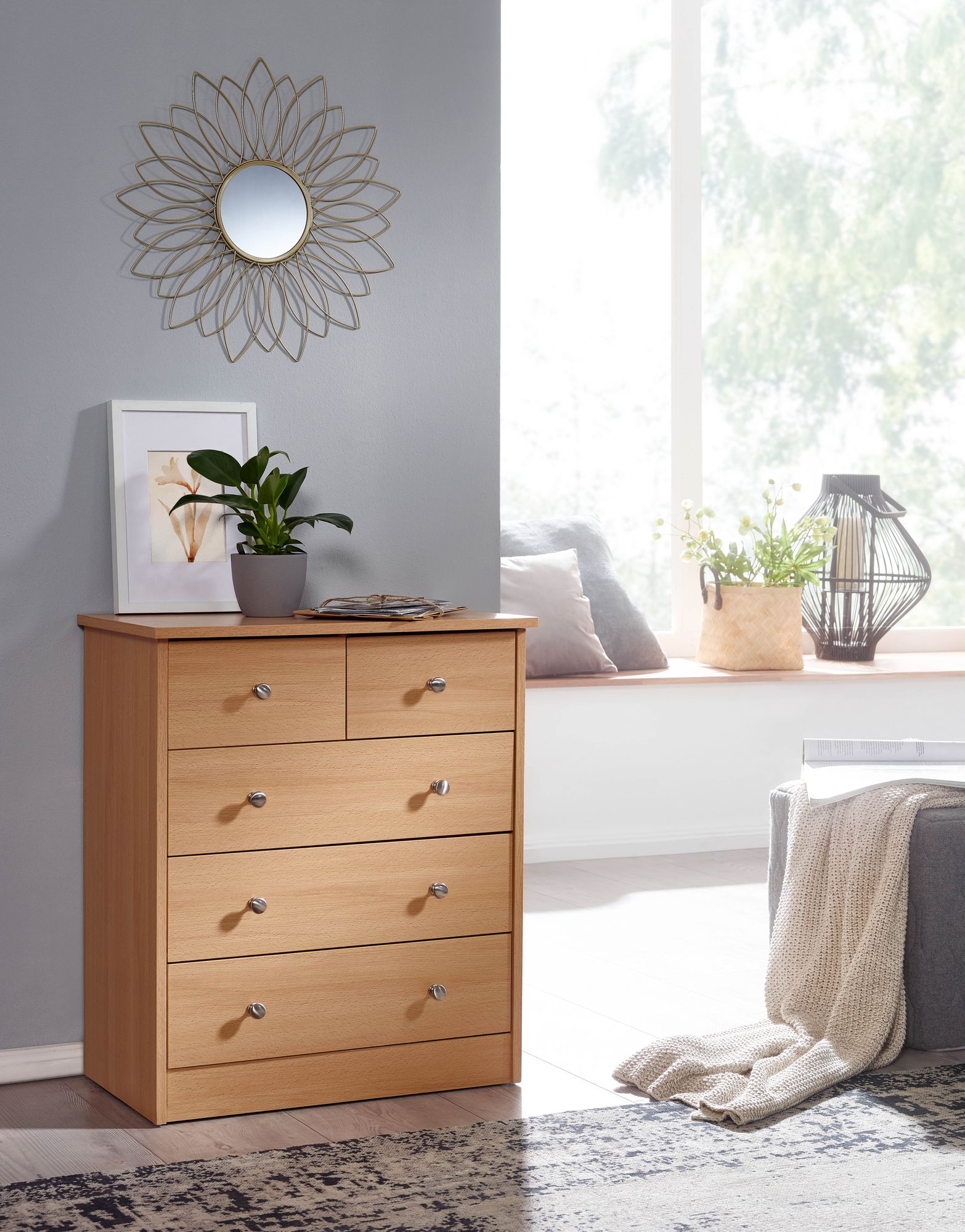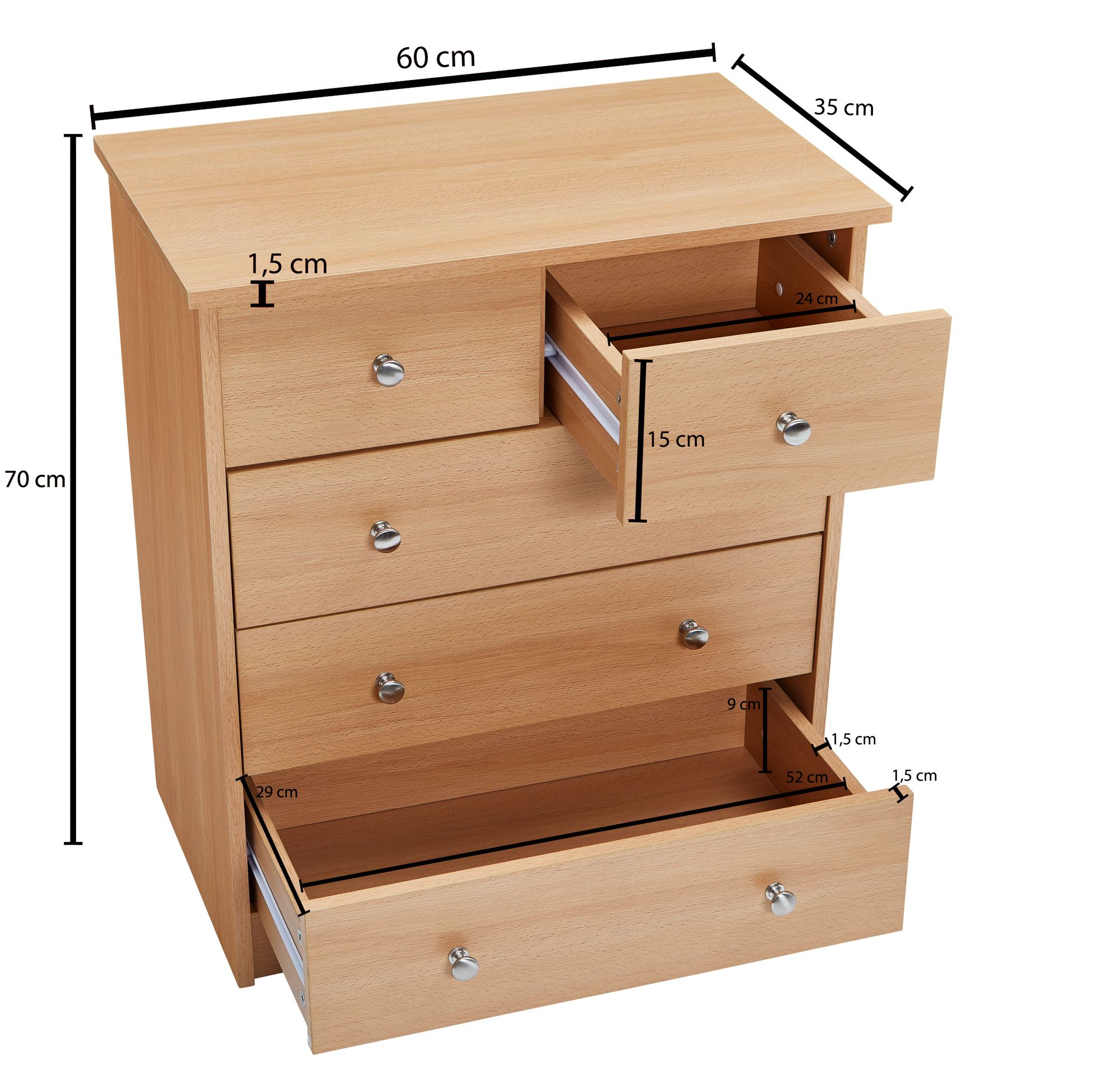 Produktinformationen "Holz-Kommode Buche natur | 60x70x35 cm | 5 Schubladen silber Metallic"