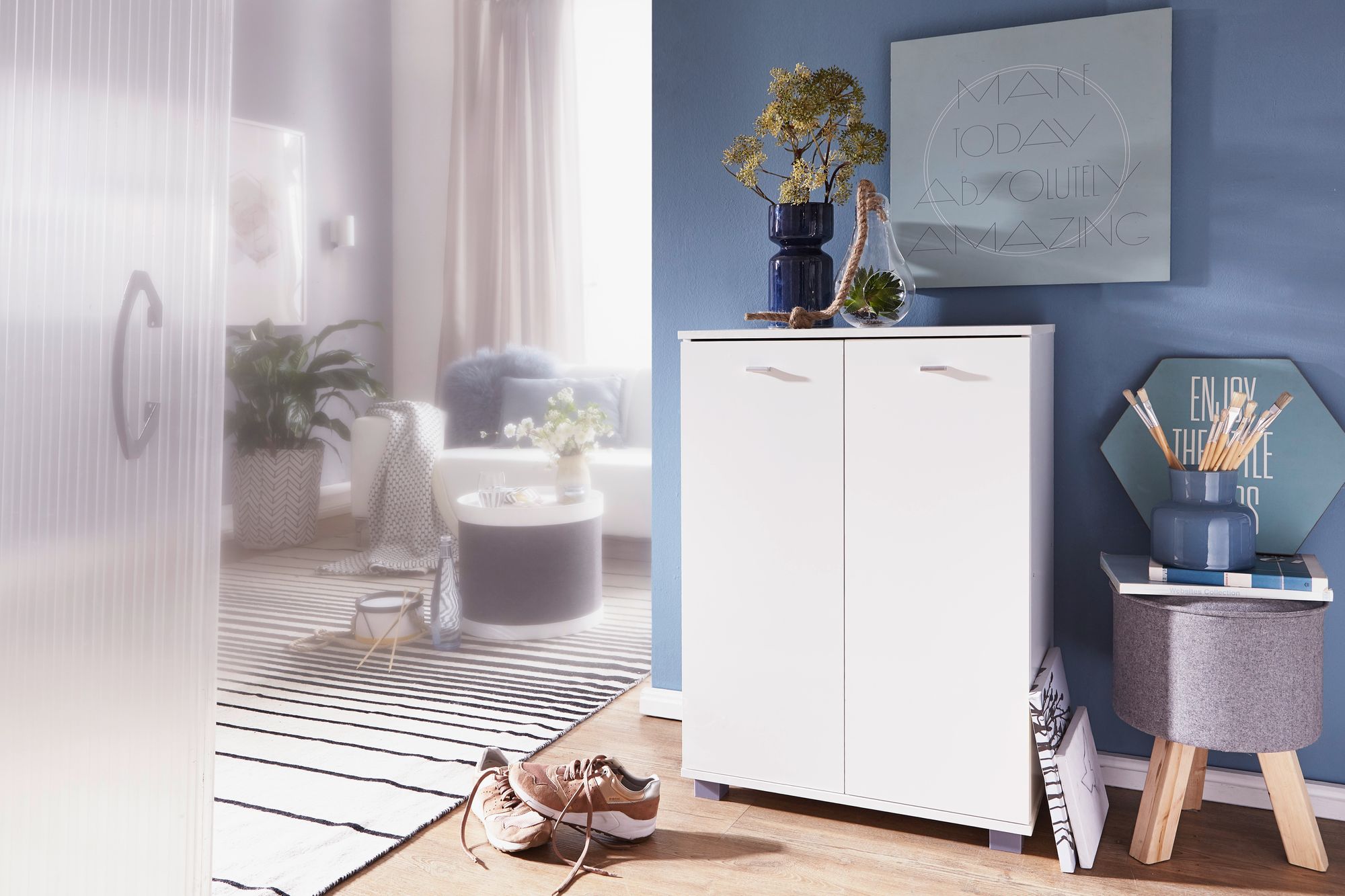 Produktinformationen "Schuhschrank NIMES Modern Weiß Holz | 2 Türen, 4 Fächer | 60 x 90 x 35 cm"