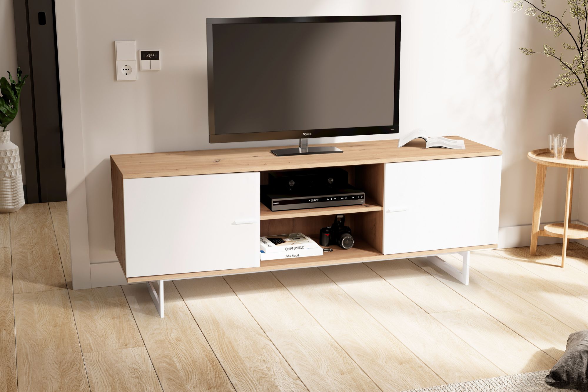 Lowboard Eiche-Dekor Weiß | 150x55x40 cm | Moderner TV-Schrank mit zwei Türen