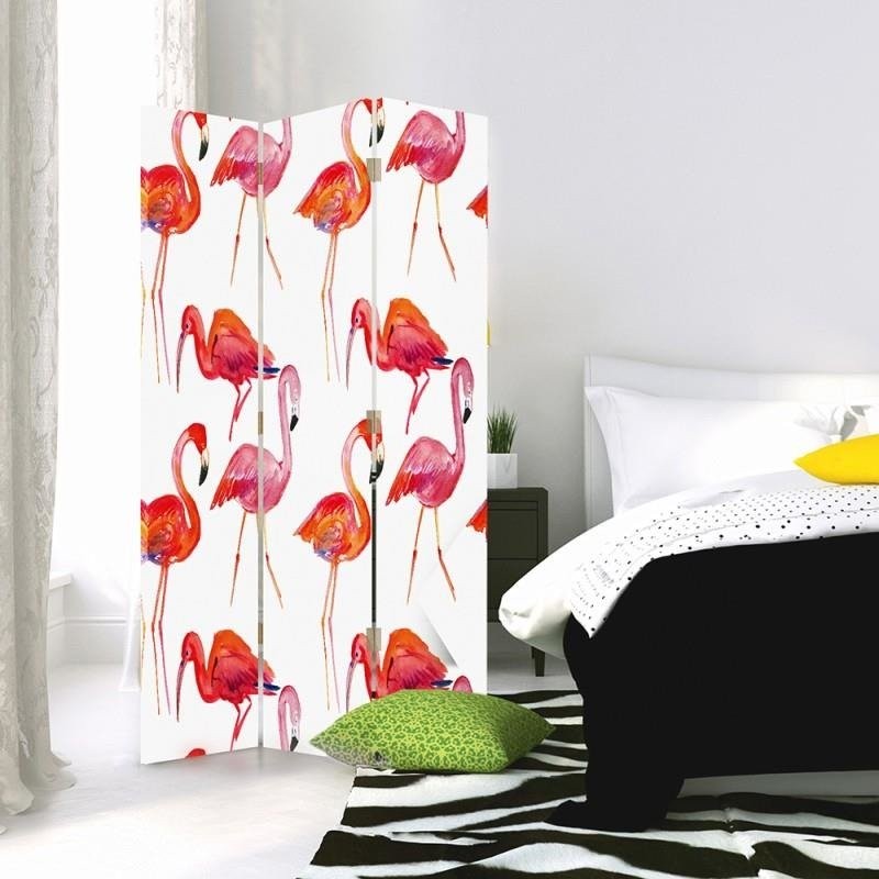 Faltbarer paravent bestehend aus drei flamingo-teilen