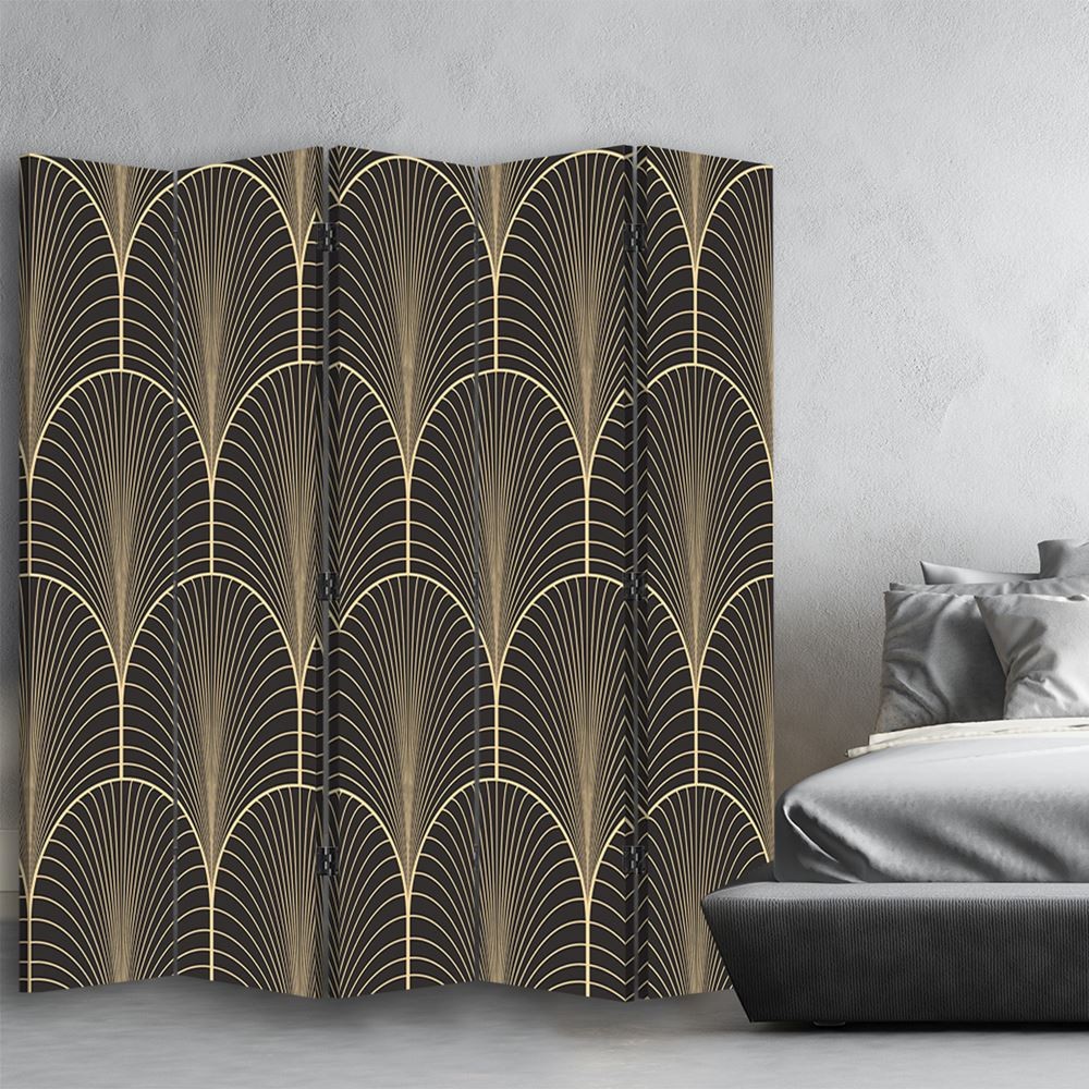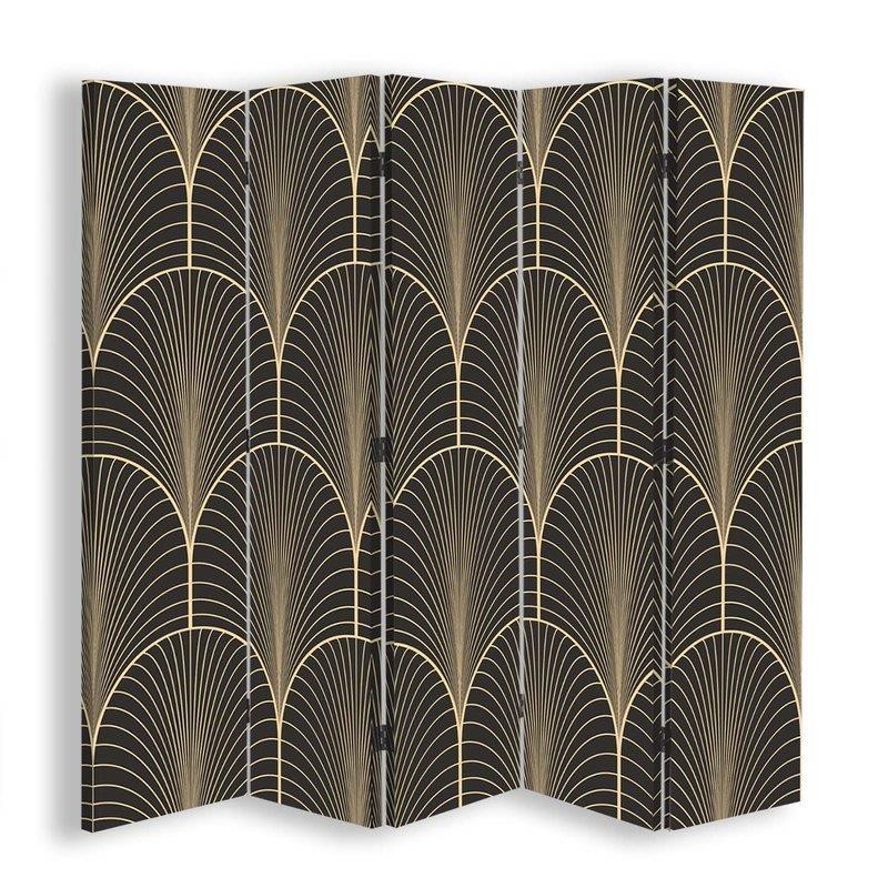 Raumteiler mit bild geometrischer figuren, gedruckt auf leinwand mit braunem finish und mdf-rahmen