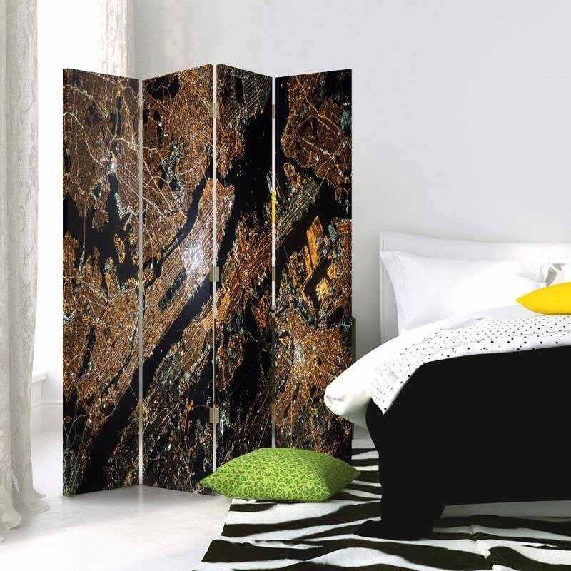 Produktinformationen "Zweiseitiger bildschirm 145 cm aus mdf und leinwand mit satellitenbild einer stadt"