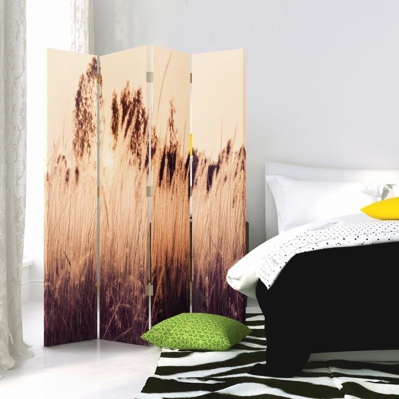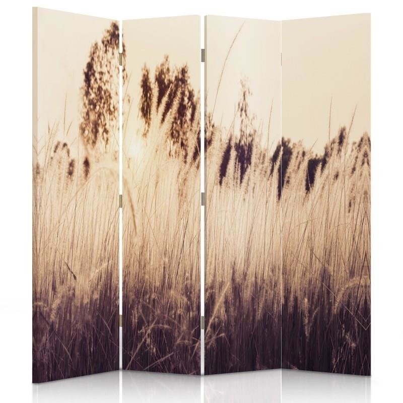 Zweiseitiger paravent 145 cm aus mdf und leinwand mit sepiabild von hohem gras