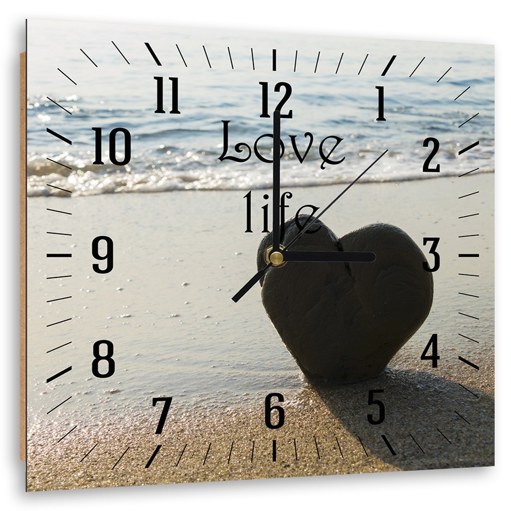Wanduhr mit bedrucktem papier und hdf-rahmen herz am strand