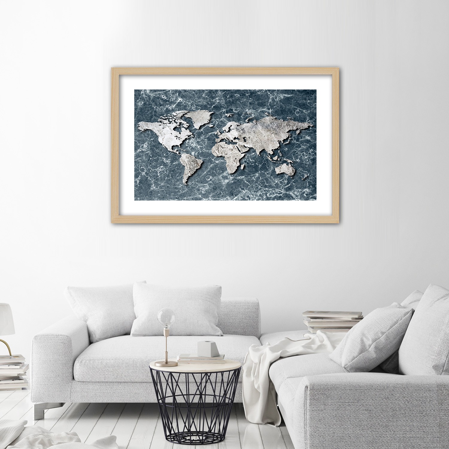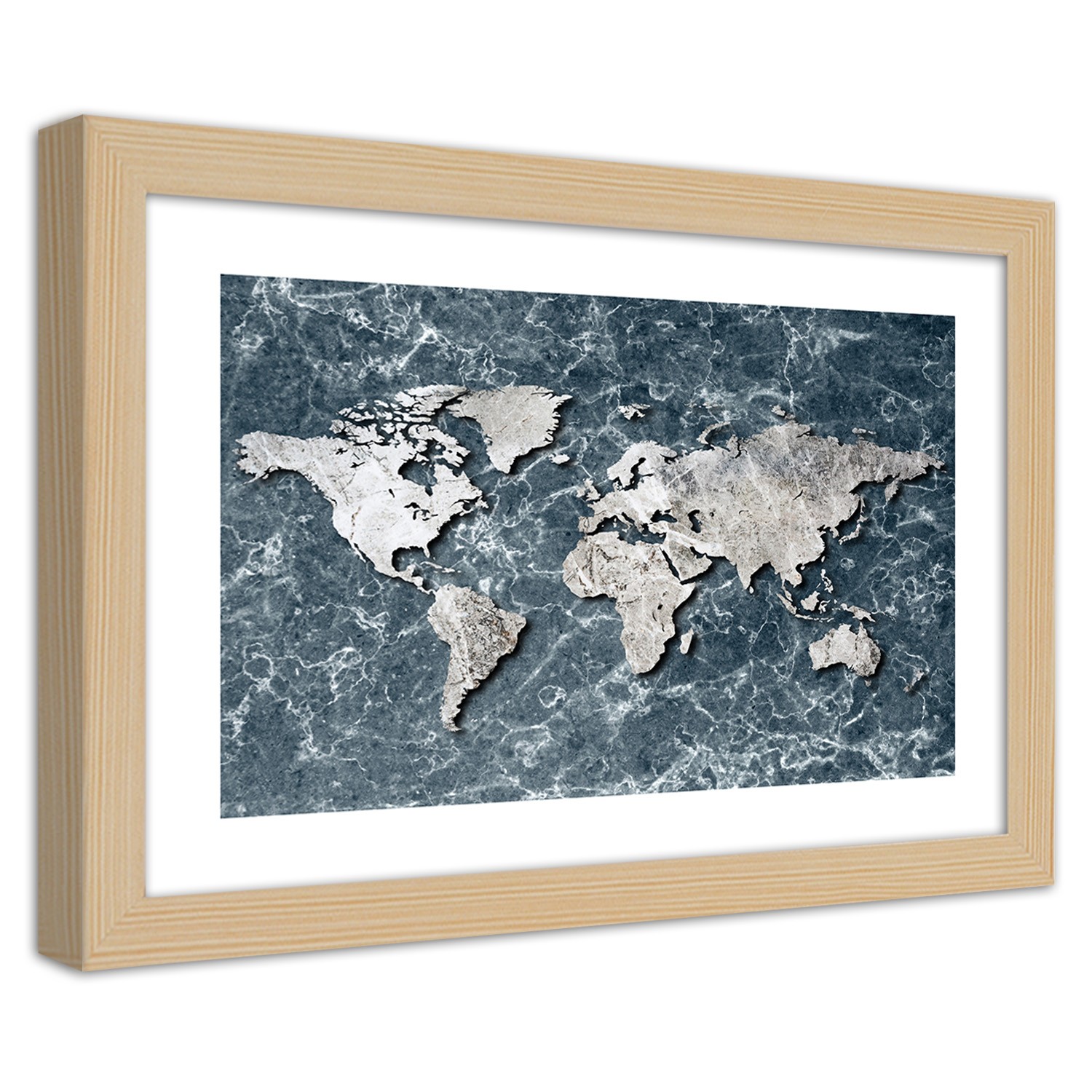 Produktinformationen "Auf leinwand gedruckter rahmen mit dem bild einer weltkarte aus mdf"