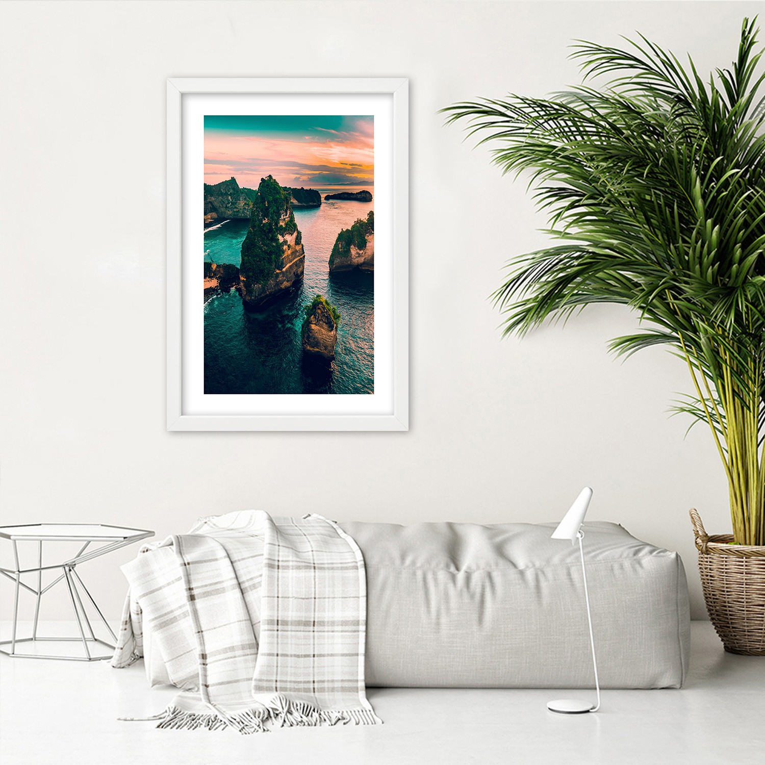 Produktinformationen "Bilder mit Rahmen, Felsen Türkis Landschaft Bild"