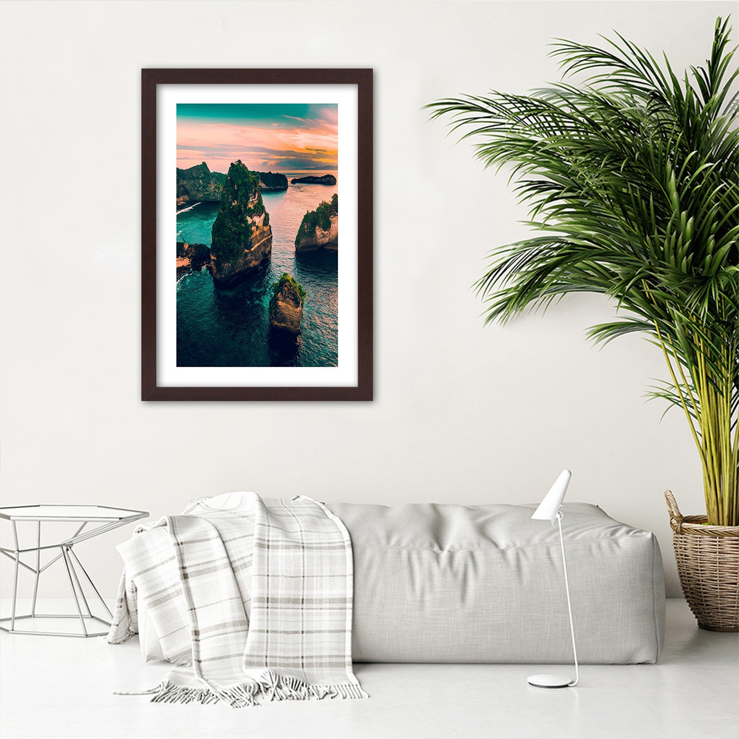 Produktinformationen "Bilder mit Rahmen, Felsen Türkis Landschaft Bild"
