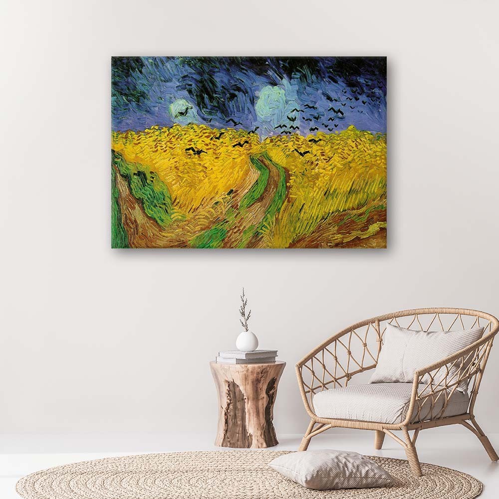 - Druck auf Leinwand, Reproduktion des berühmten Gemäldes von Van Gogh, Weizenfeld mit Krähen.