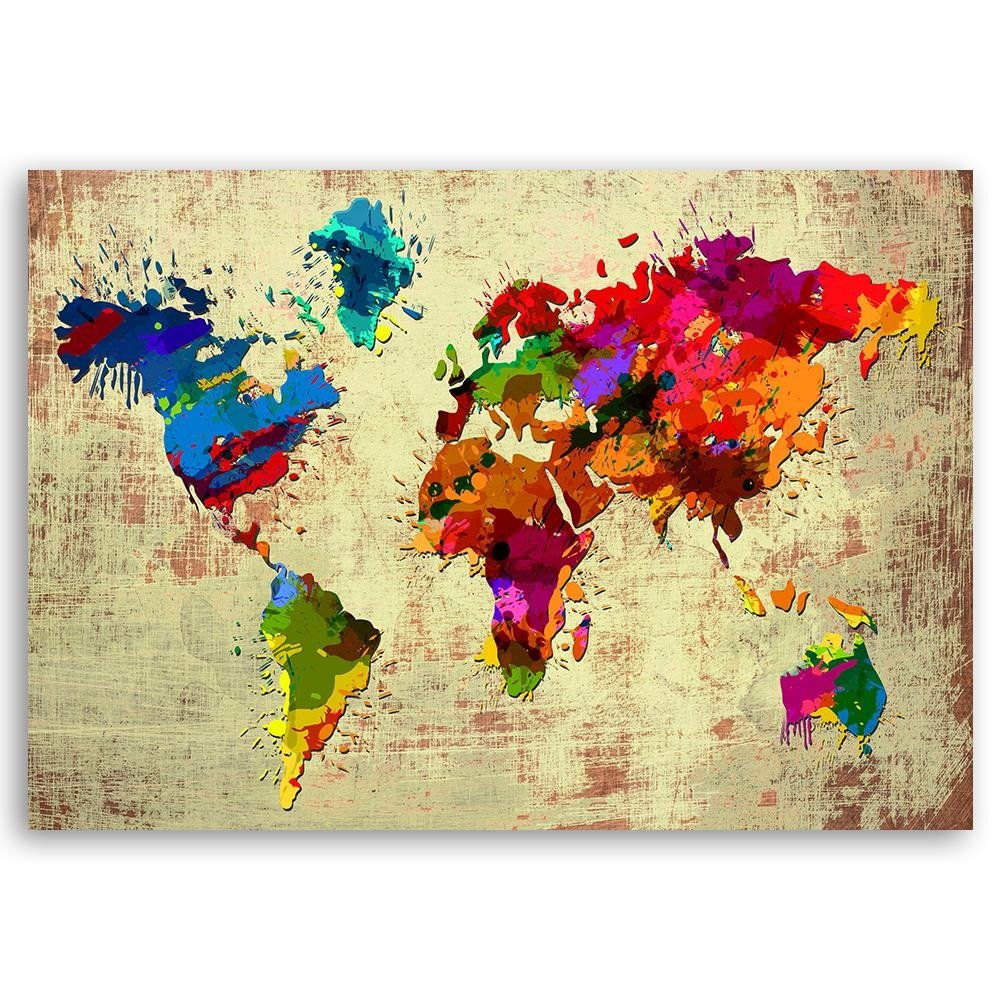Produktinformationen "Rechteckiger rahmendruck auf leinwand mit einer mehrfarbigen weltkarte"