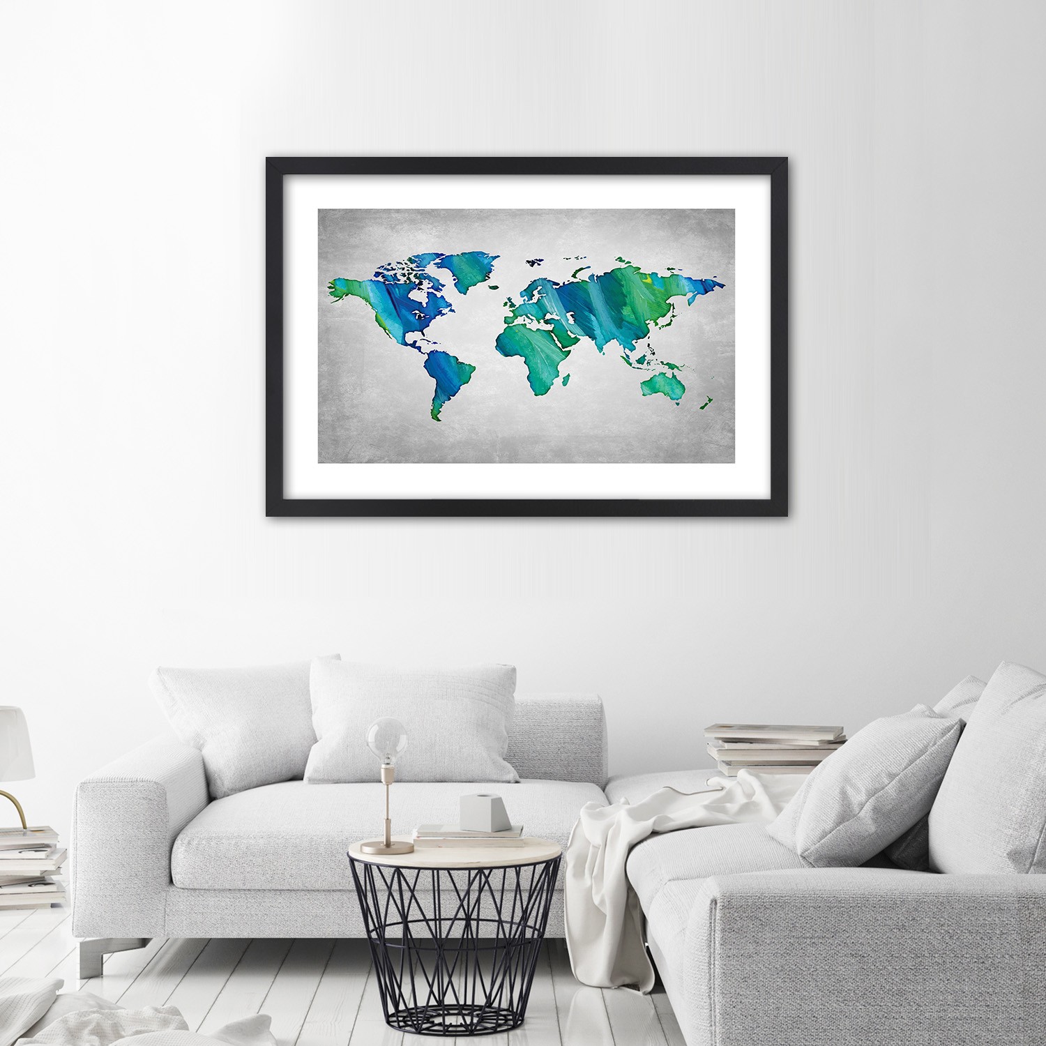 - Rahmen schafft eine einzigartige Atmosphäre, Motiv: farbige Weltkarte auf Beton.