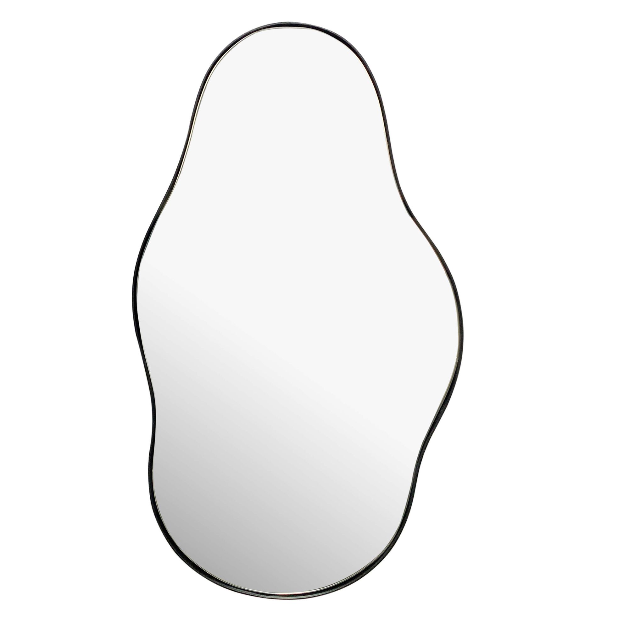 Wählen Sie einen einzigartigen asymmetrischen Wandspiegel mit schwarzem Metallrahmen. Die originelle und dynamische Form verleiht Ihrem Raum einen zeitgenössischen Akzent, ideal für Flure, Wohnzimmer oder moderne Innenräume.