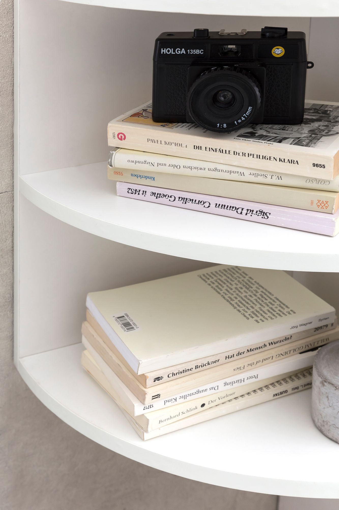 Eckregal Weiß Holz 30x60x30 cm | 3 Offene Fächer | Modernes Hängeregal mit runder Front