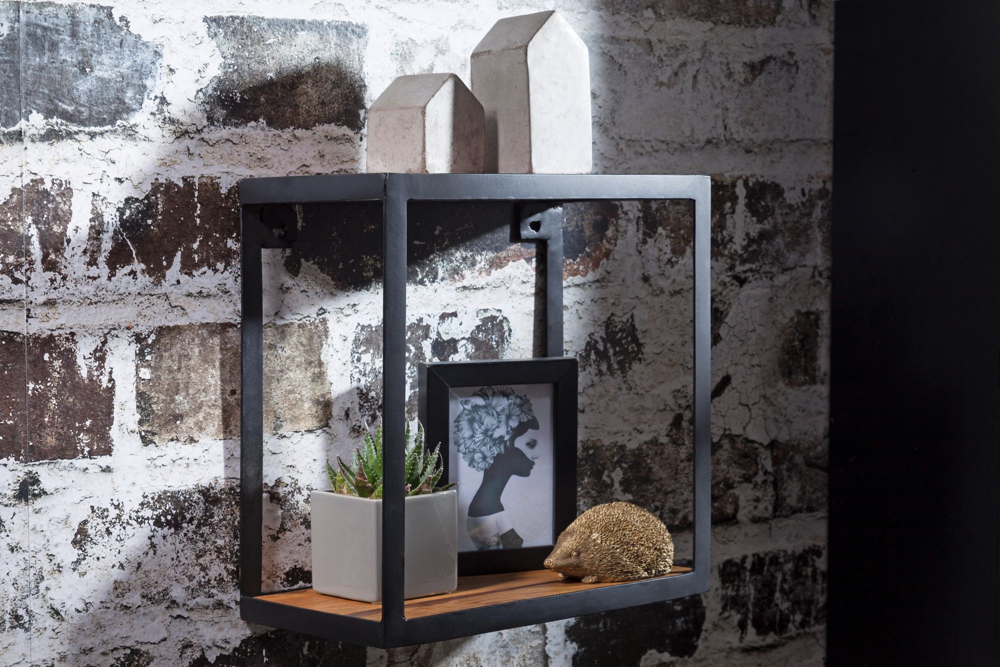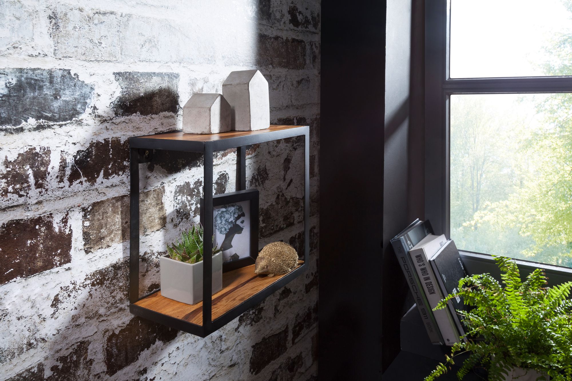 Produktinformationen "Wandregal PURI | Sheesham Massivholz und schwarzes Metall | 35x18x35 cm"