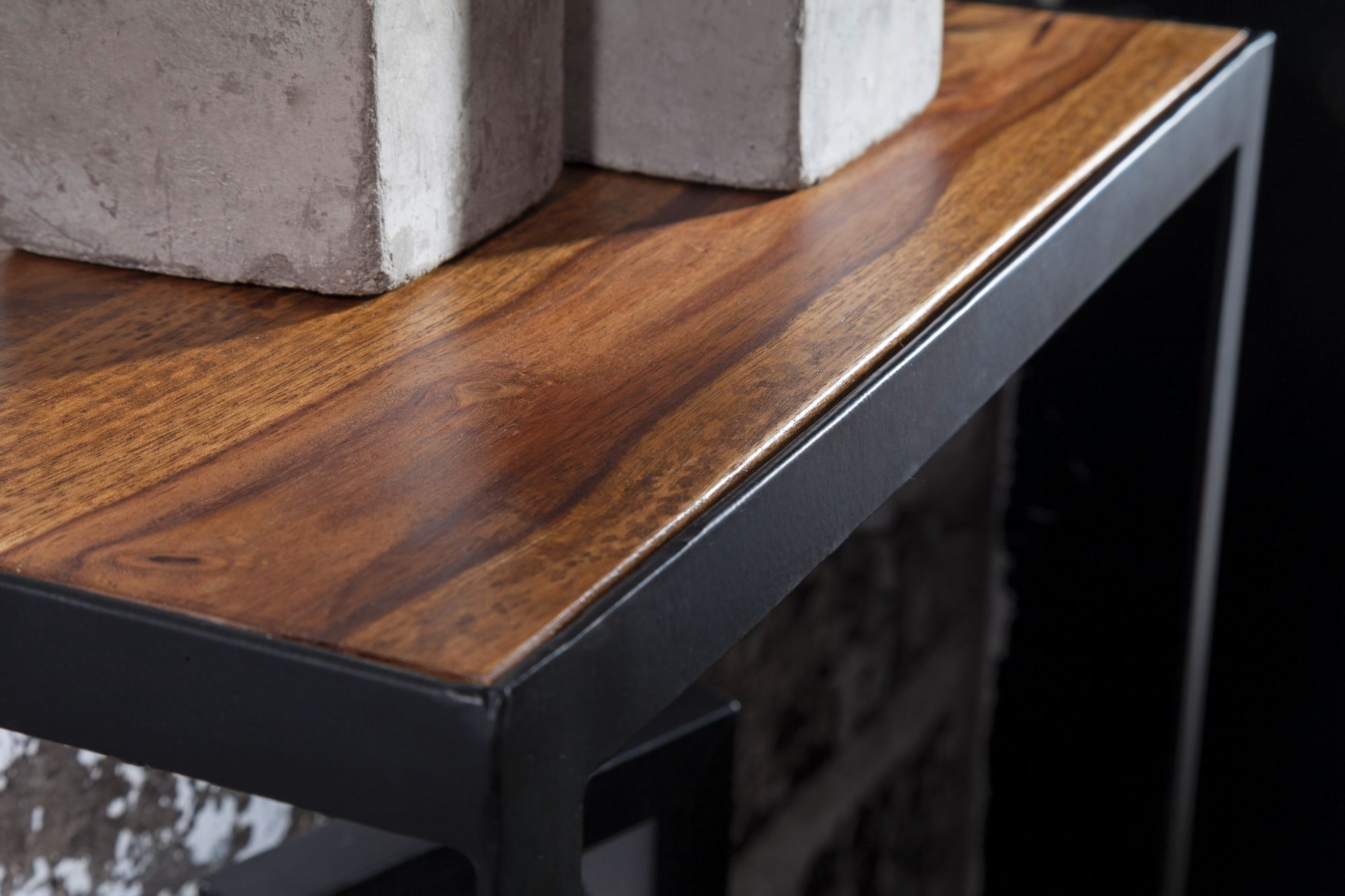 - Material: Einlegeböden aus massivem Sheesham-Holz, Gestell aus schwarzem Metall