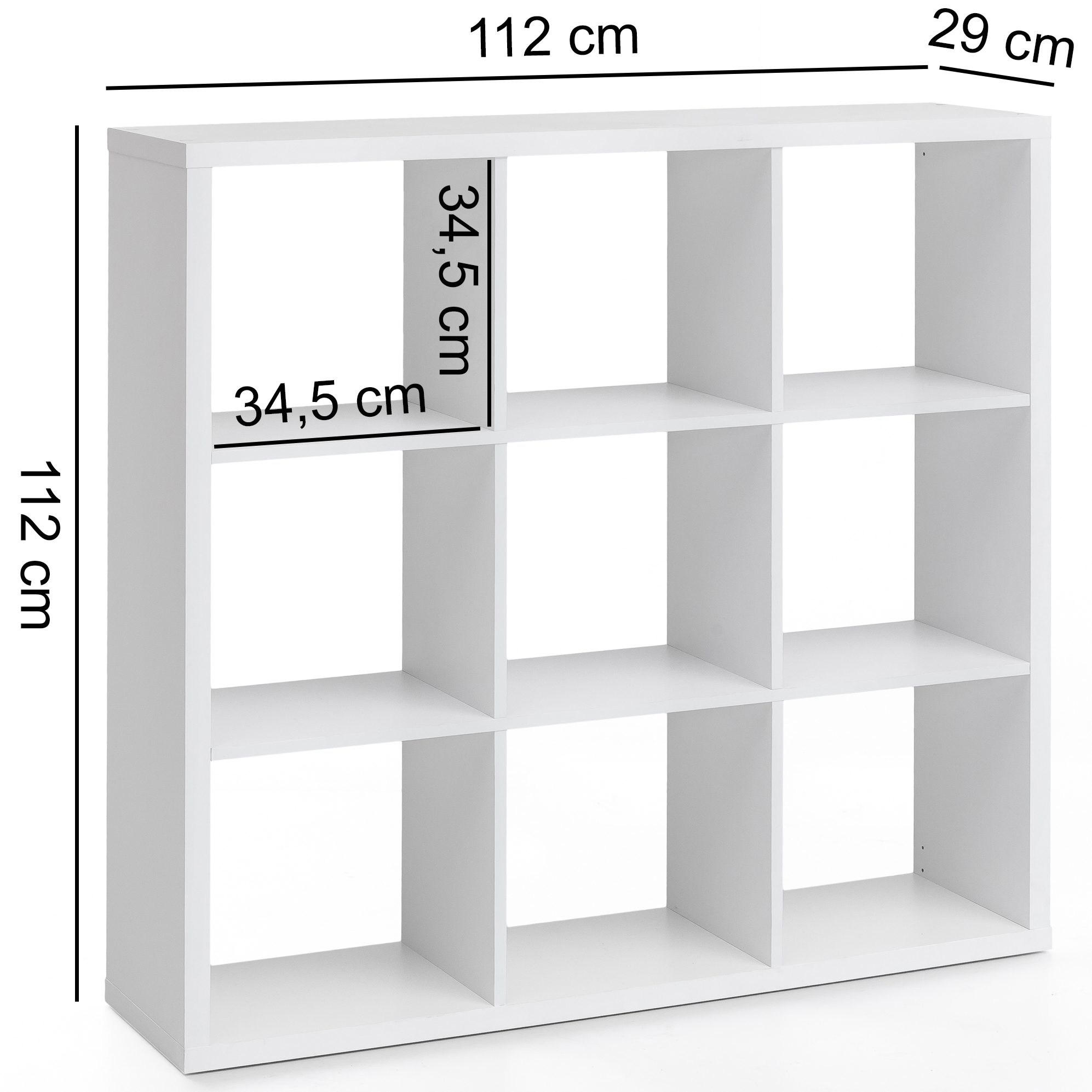Produktinformationen "Weißes Würfelregal aus melaminbeschichtetem Holz | 112x29x112 cm | 9 Fächer"