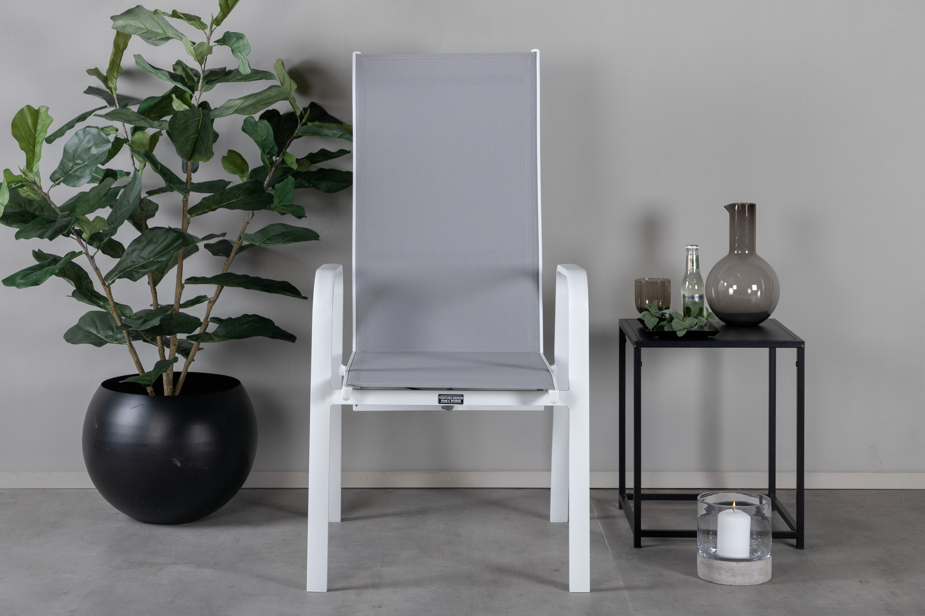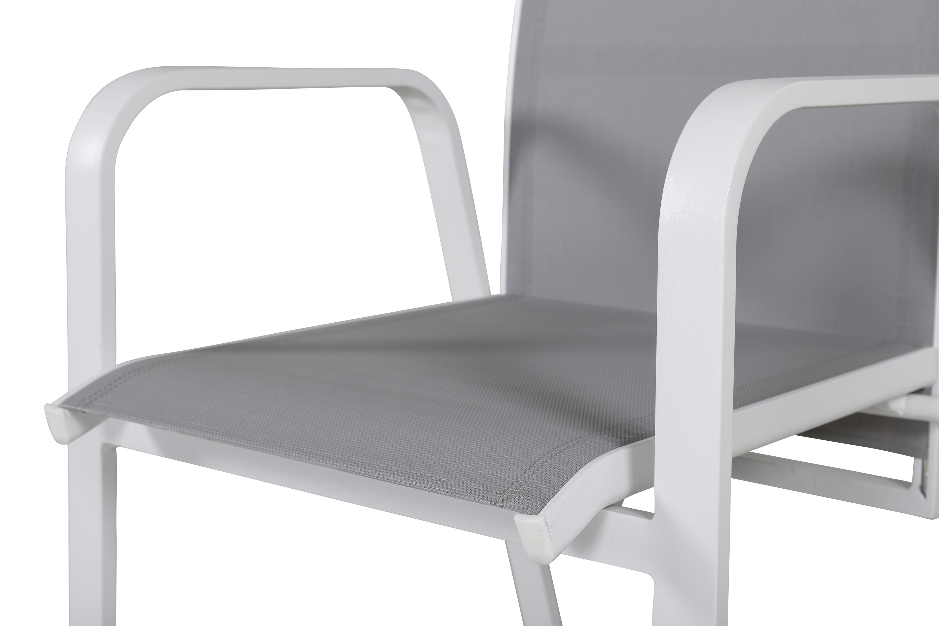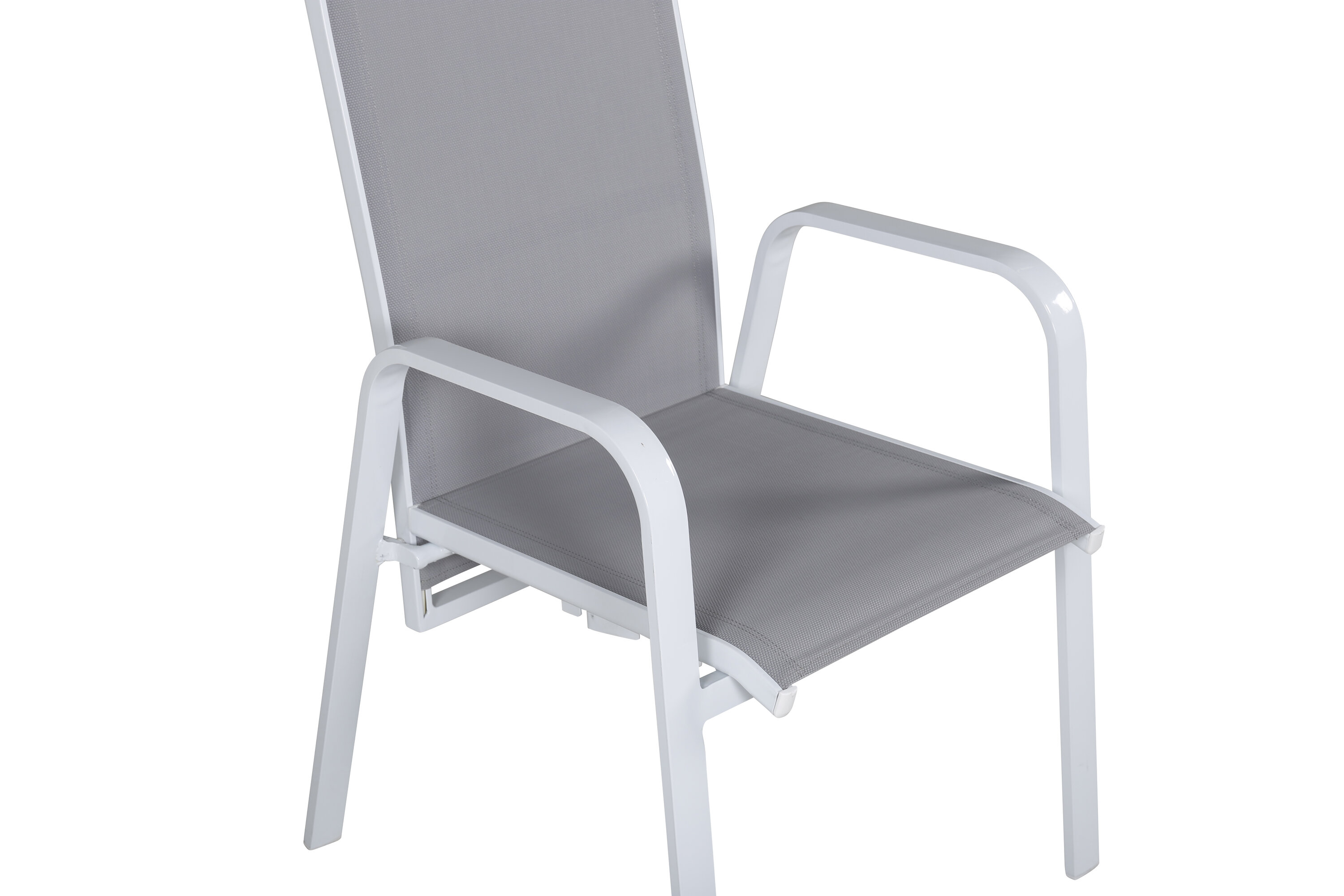 Weiß-grauer stapelbarer Sessel aus der Copacabana-Serie, der sich gut am Esstisch auf dem Balkon macht. Die Rückenlehne des Stuhls kann eingeklemmt werden, was ihn sehr bequem und praktisch macht. Genießen Sie den Sommer auf die beste Weise! Der Stuhl ist stapelbar.