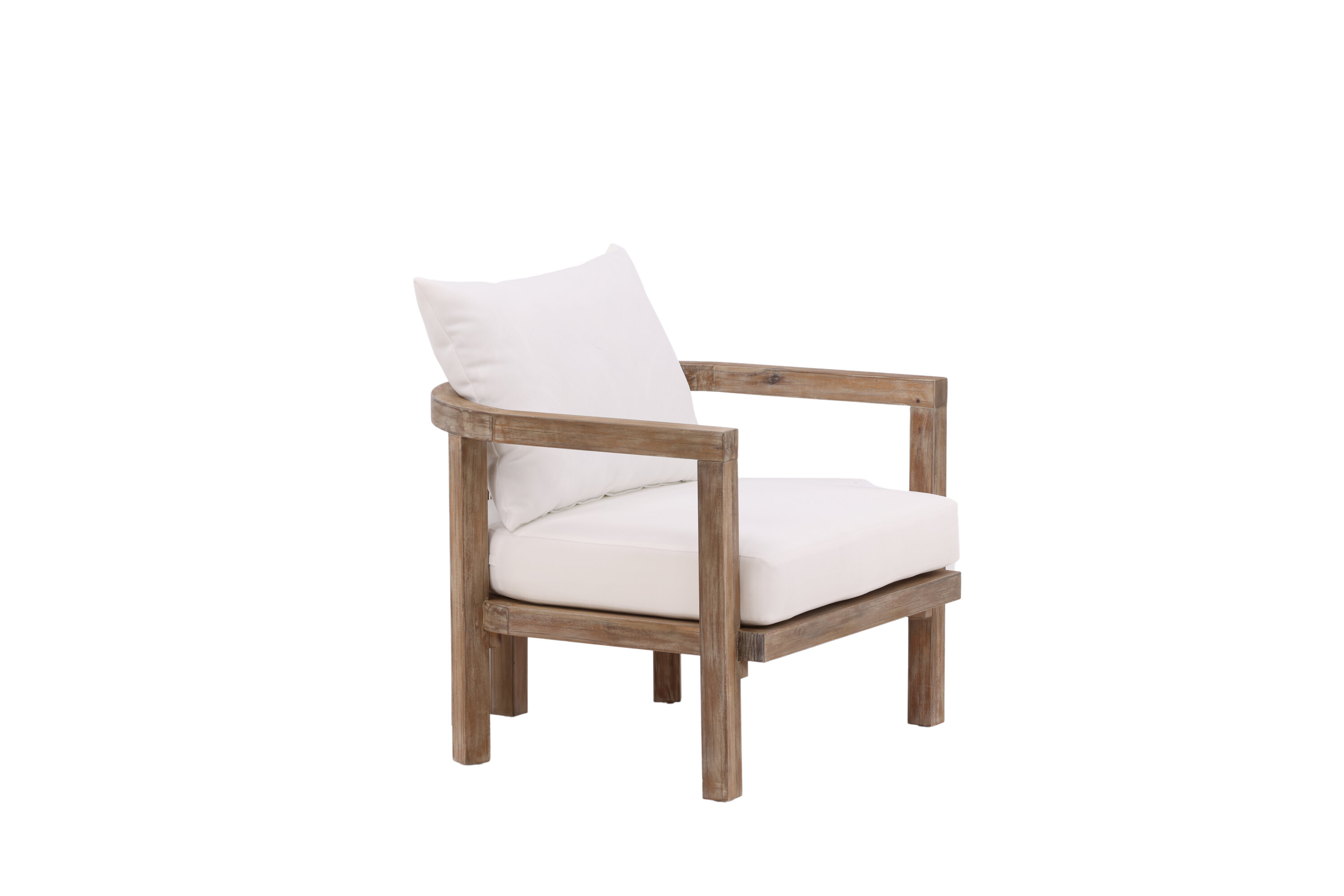Ein Traumstuhl für das sommerliche Nachtleben! Ein moderner und stilvoller Sessel aus brauner Akazie mit weichen weißen Kissen. Der Stuhl hat einen industriellen und rustikalen Ausdruck, wodurch er in die meisten Umgebungen passt. Unser Liegestuhl Erica passt genauso gut am Poolrand wie unter den Pavillon im Garten. Ein bequemer und robuster Stuhl, bei dem jeder einfach Recht hat!