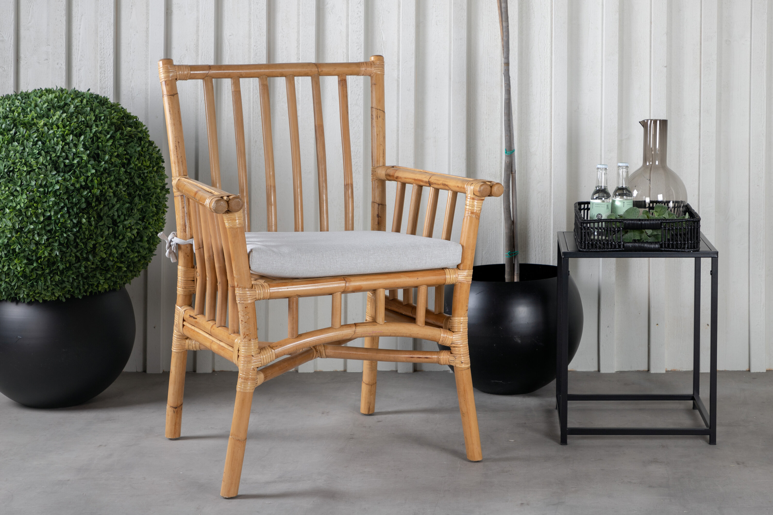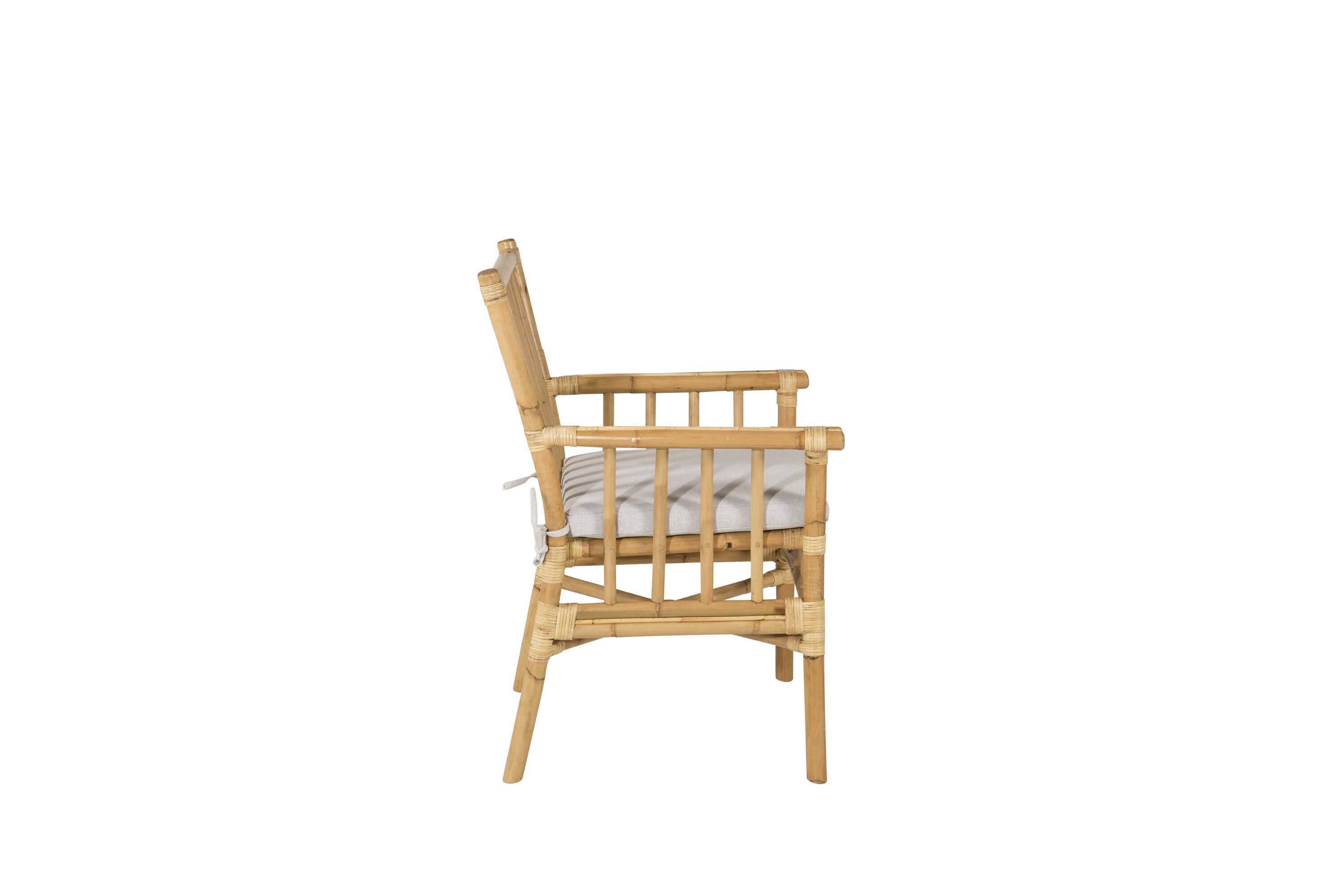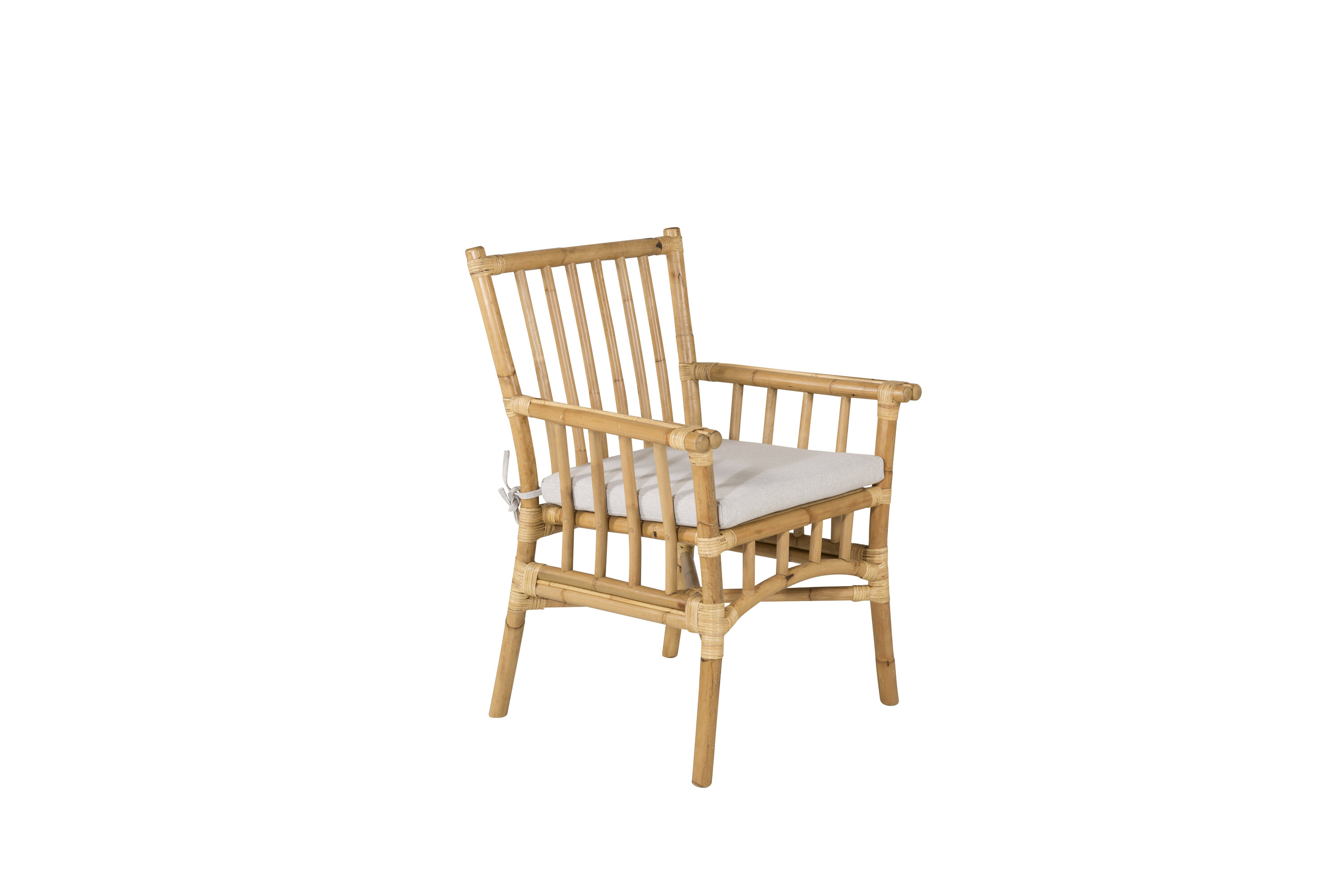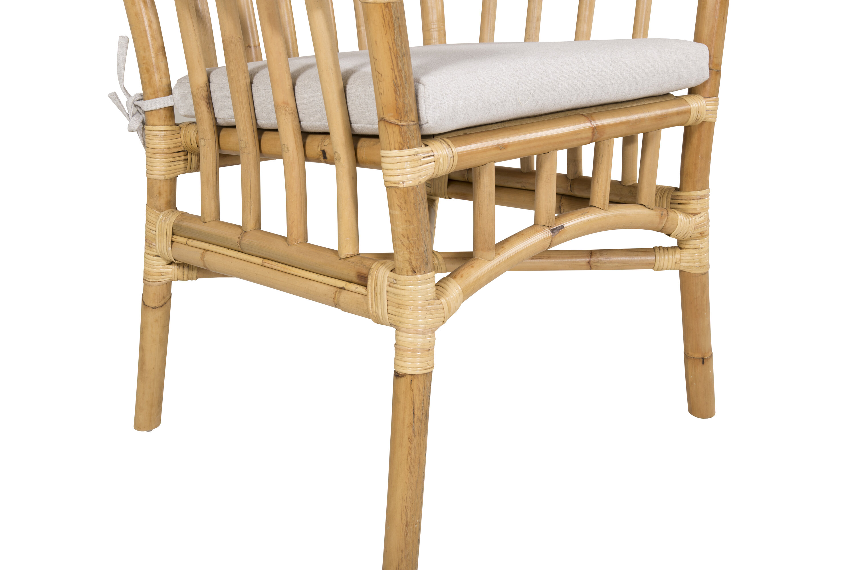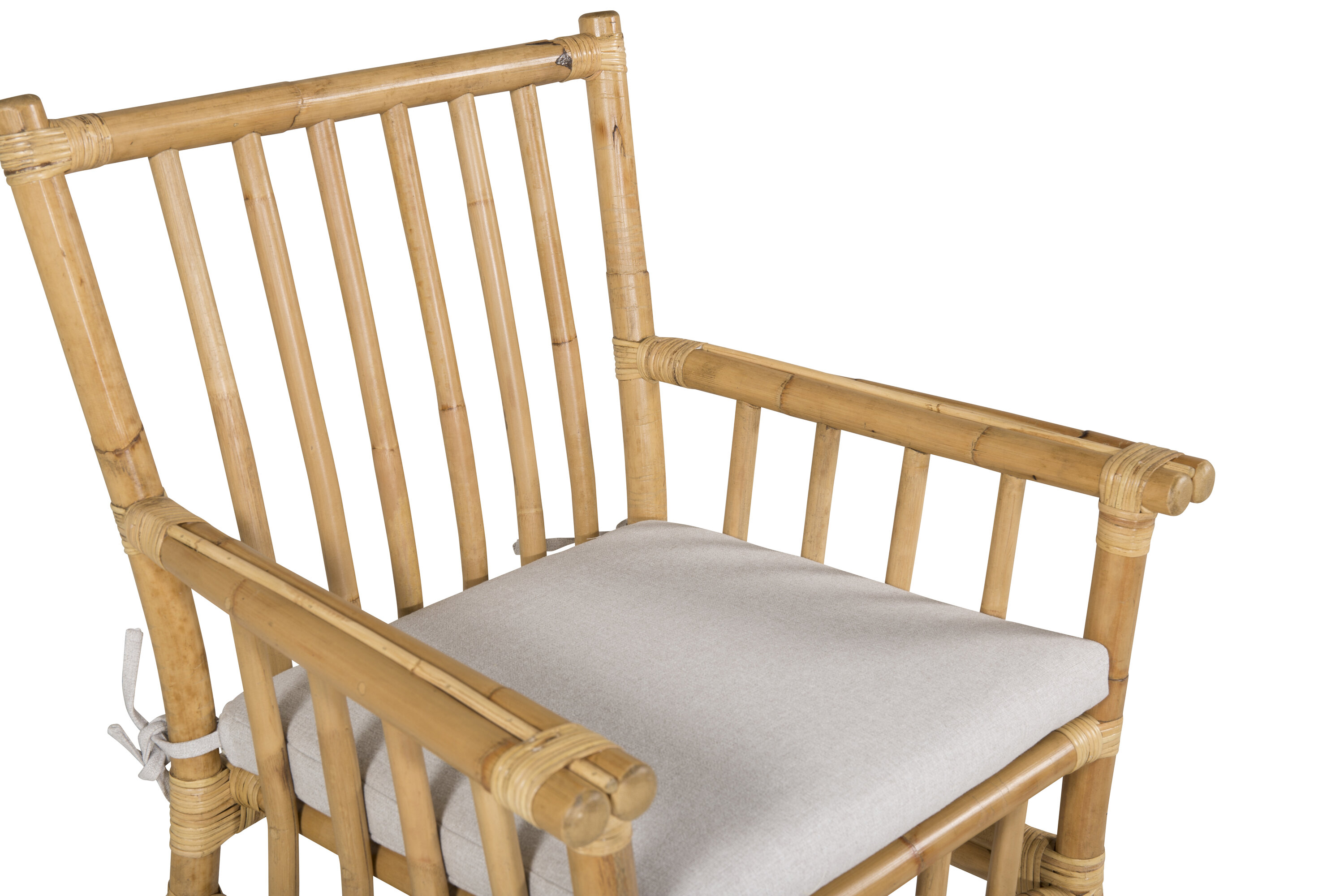 Statten Sie die Terrasse mit Bambusstühlen in luxuriöser Optik aus der Cane-Serie aus! Dieser stilvolle Stuhl mit geraden nordischen Formen schafft mit seinem durchdachten Gesamtdesign eine einladende und tropische Atmosphäre. Die dazugehörigen weißen Kissen sind aus weichem Polyestergewebe gefertigt. Der Korpus ist aus naturfarbenem Bambus gefertigt und das natürliche Material verleiht jedem einzelnen Möbel einen einzigartigen Charakter. Ein stilvoller und eleganter Stuhl zieht einfach die Blicke auf sich und erhöht den Komfort an einem Spätsommerabend.