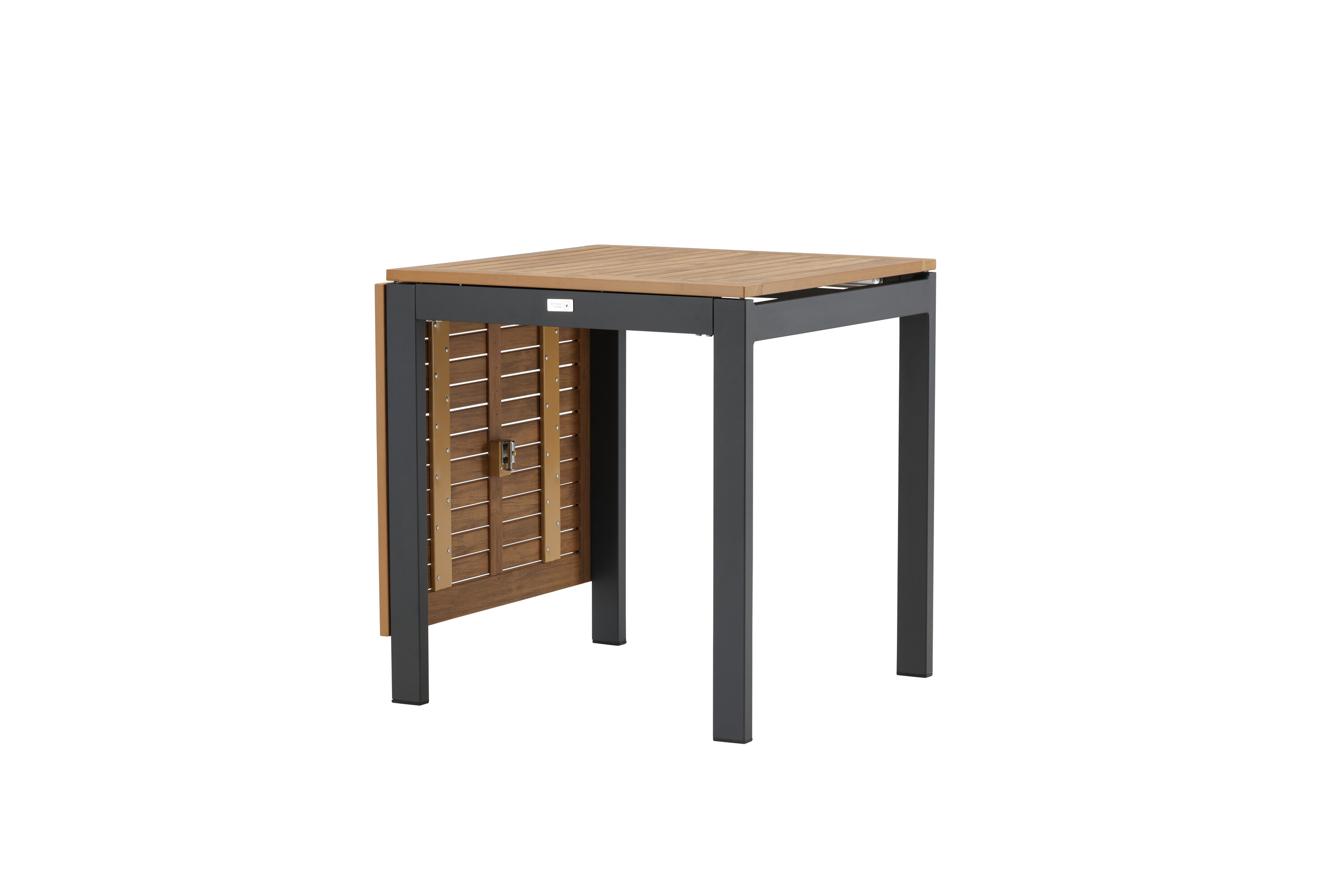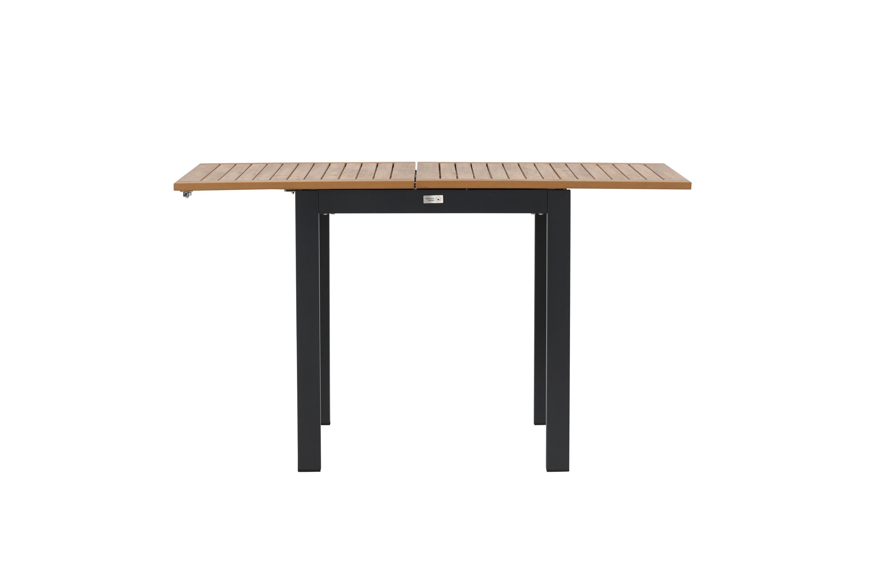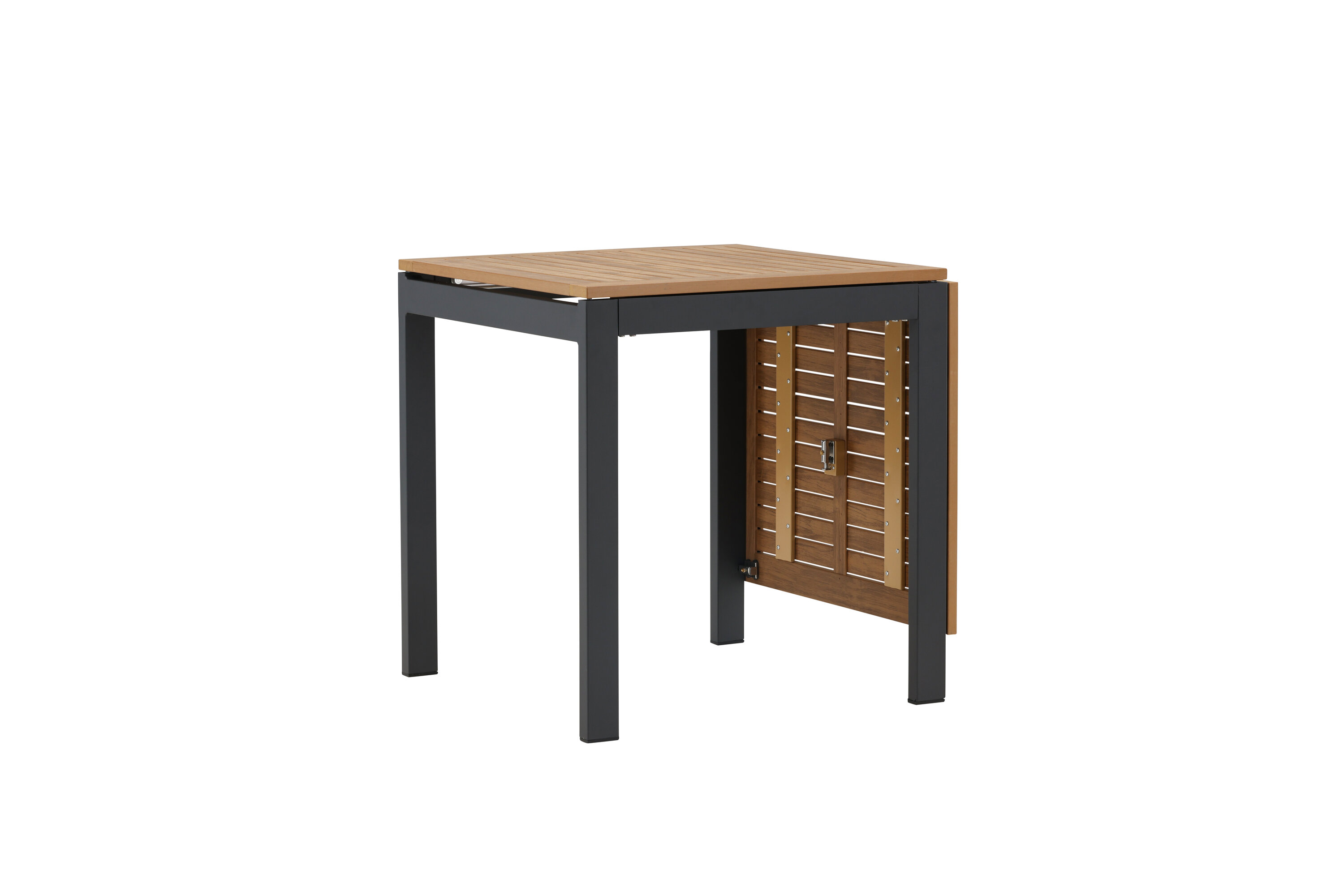 Der Diego-Café-Tisch ist so elegant wie stilvoll in einem geschmackvollen skandinavischen Design! Die Tischplatte ist aus braunem Holz und die Beine aus schwarzem Aluminium. Die geraden nordischen Formen sind zeitlos und bei einfacher Konstruktion können Sie die Erweiterungsbretter bei Bedarf ganz einfach an den Seiten hoch- oder herunterklappen. Perfekt zum Frühstück oder Kaffee draußen an einem sonnigen Sommertag!