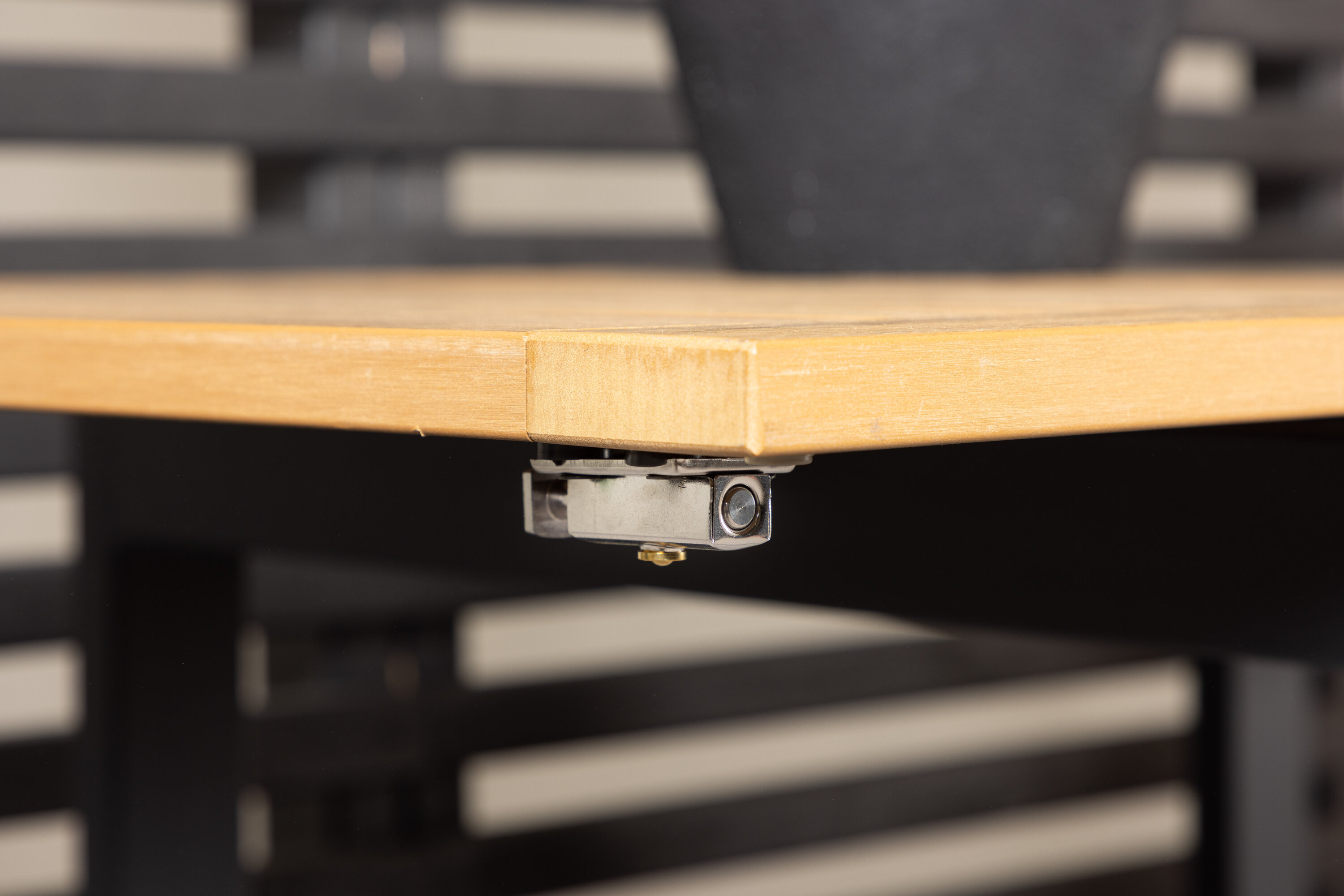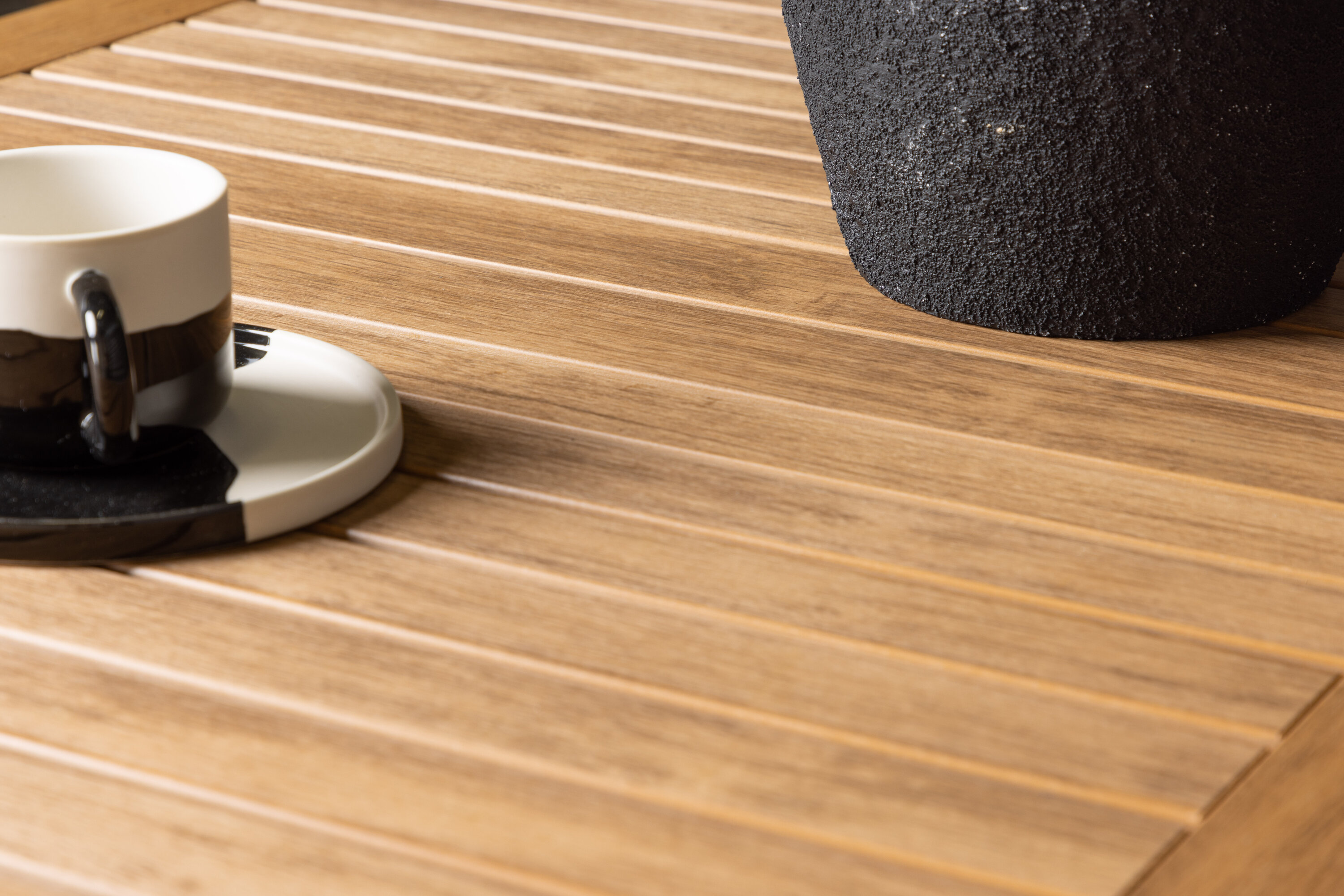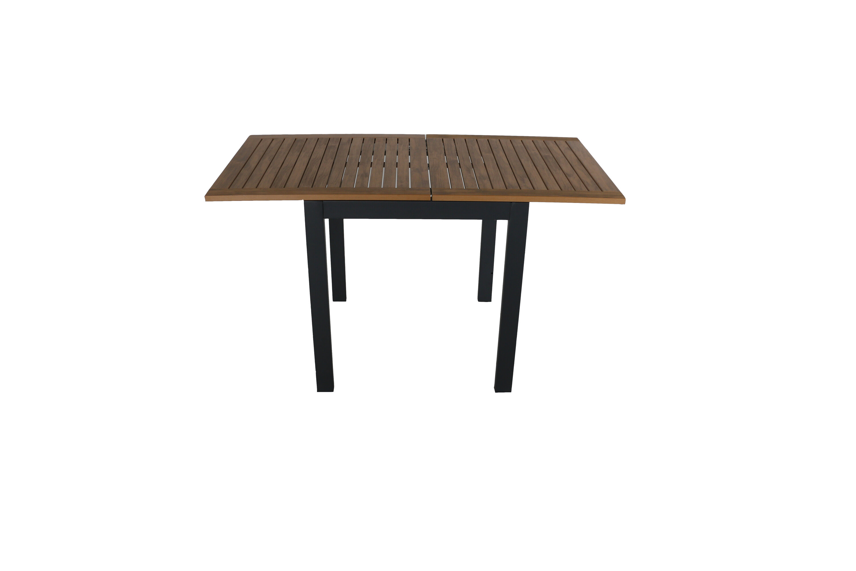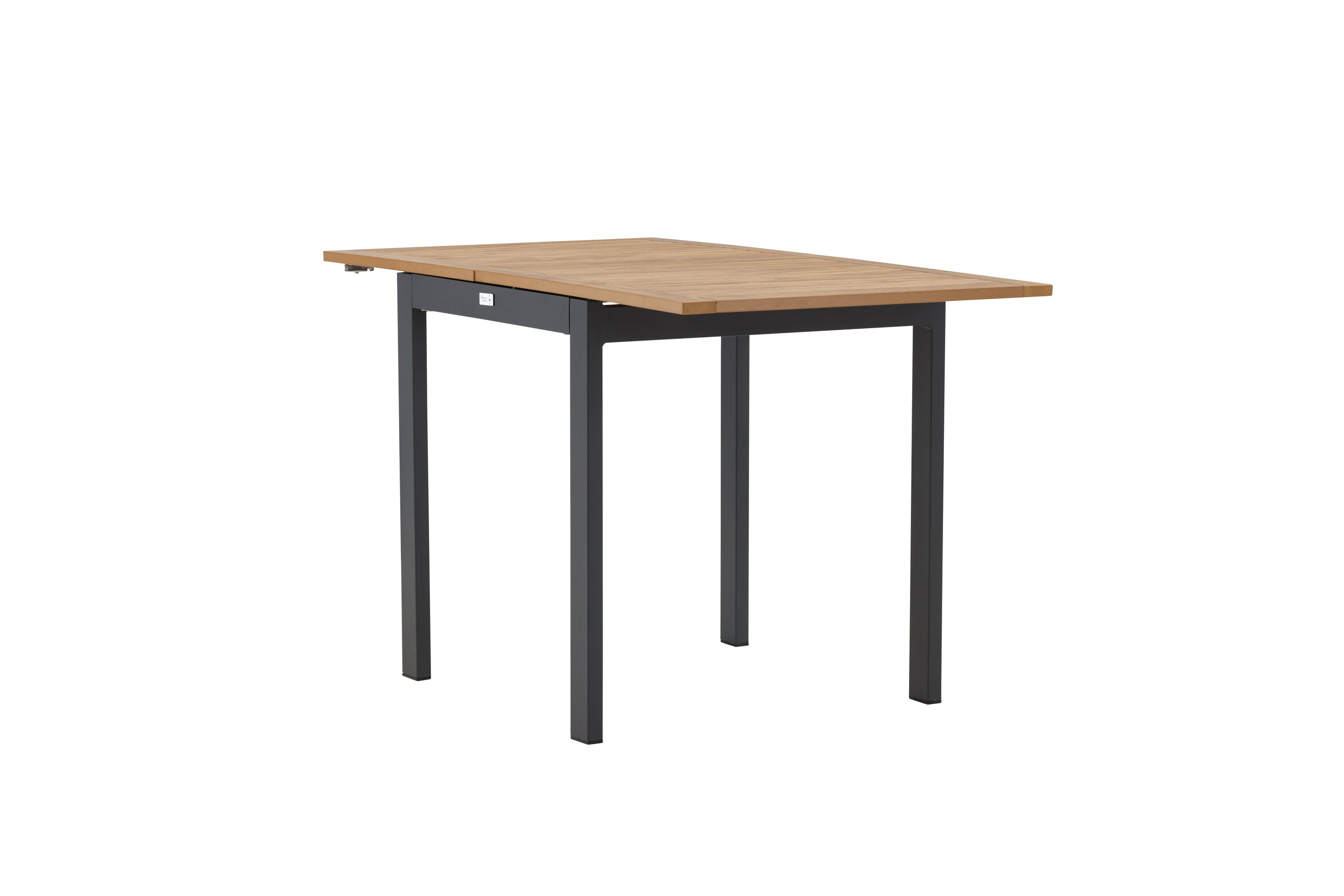 Der Diego-Café-Tisch ist so elegant wie stilvoll in einem geschmackvollen skandinavischen Design! Die Tischplatte ist aus braunem Holz und die Beine aus schwarzem Aluminium. Die geraden nordischen Formen sind zeitlos und bei einfacher Konstruktion können Sie die Erweiterungsbretter bei Bedarf ganz einfach an den Seiten hoch- oder herunterklappen. Perfekt zum Frühstück oder Kaffee draußen an einem sonnigen Sommertag!