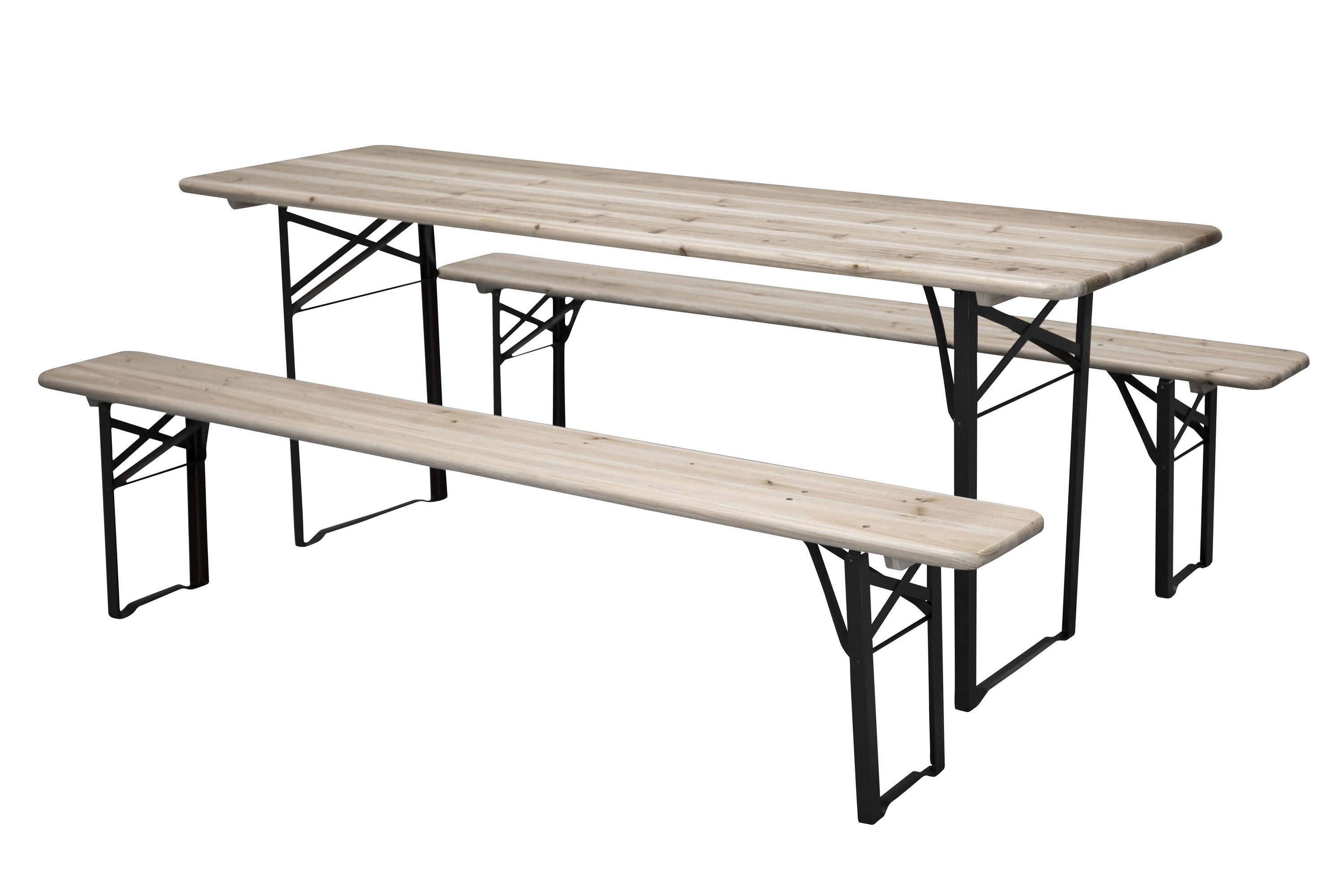 Faltbare Lebensmittelgruppe mit einem Tisch und zwei Bänken.