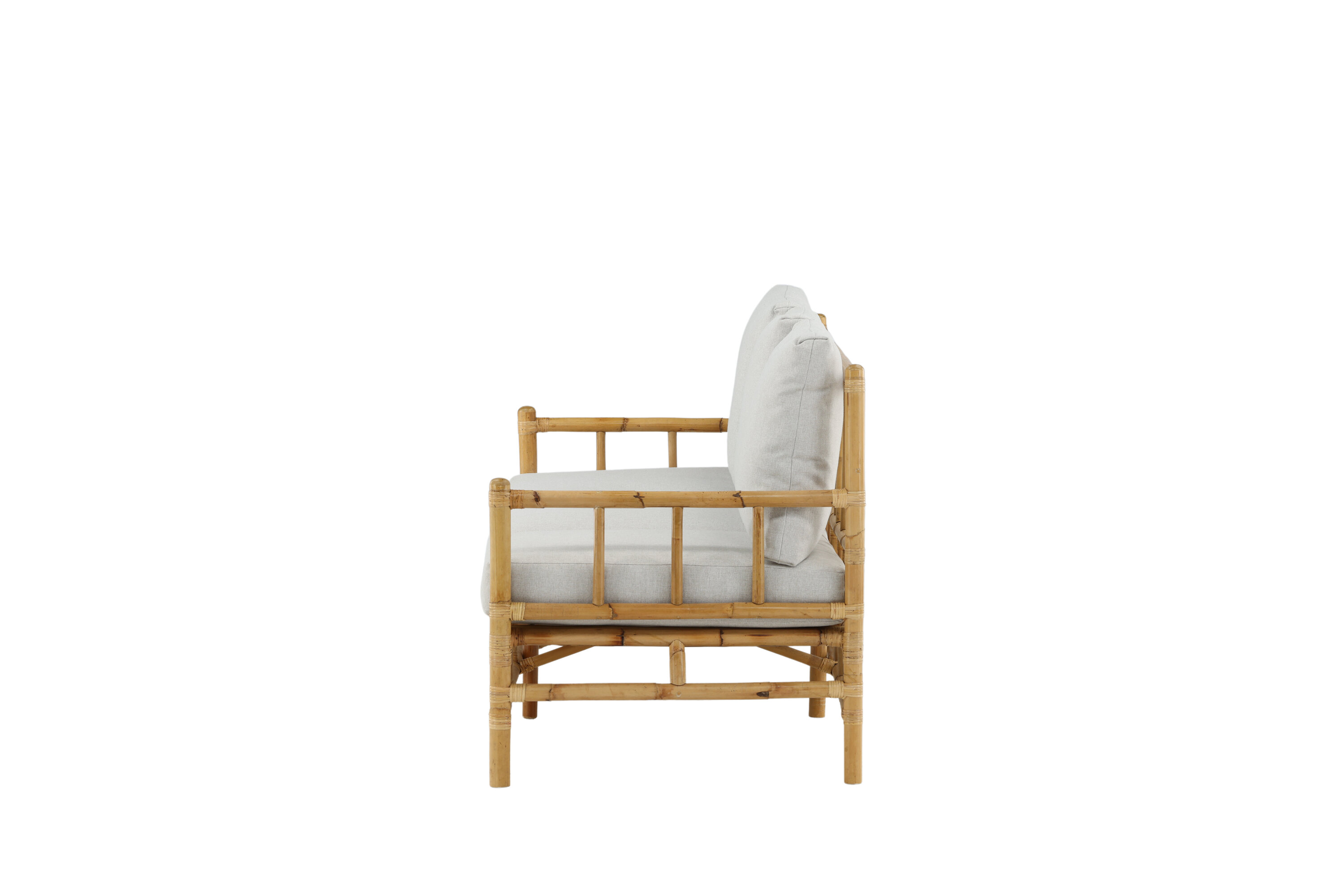 Statten Sie die Terrasse mit einem klassischen Bambussofa in luxuriöser Optik aus der Cane-Serie aus! Dieses bequeme Drei-Sofa schafft mit seinem durchdachten Gesamtdesign eine einladende und tropische Atmosphäre. Die dazugehörigen weißen Kissen sind aus weichem Polyestergewebe gefertigt. Der Korpus ist aus naturfarbenem Bambus gefertigt und das natürliche Material verleiht jedem einzelnen Möbel einen einzigartigen Charakter. Ein stilvolles und elegantes Außensofa zieht einfach die Blicke auf sich und erhöht den Komfort an einem Spätsommerabend.