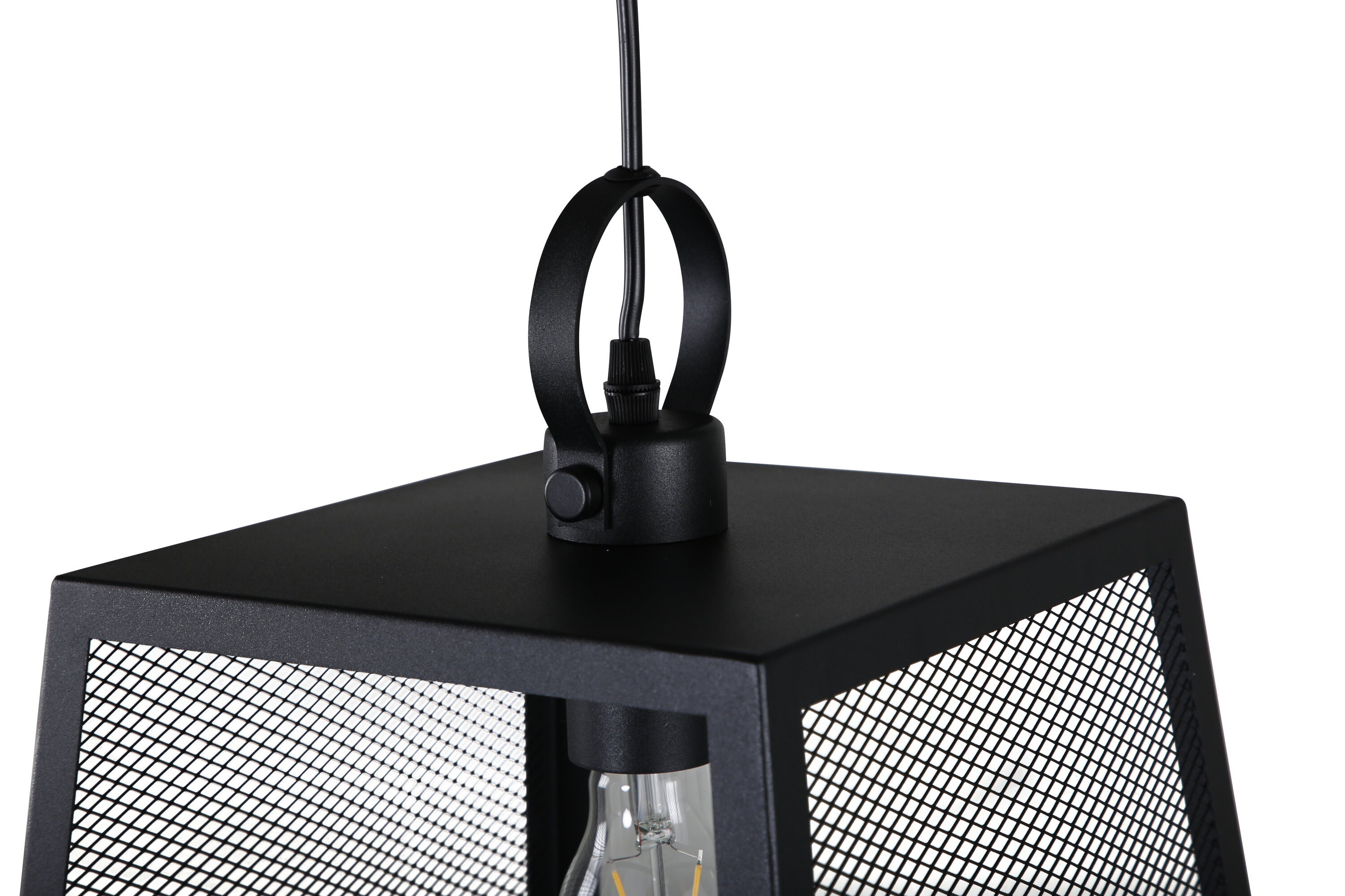 Hage ist eine Deckenleuchte, die durch ihr einzigartiges Design überzeugt! Die Lampe hat einen schwarzen Rahmen aus Stahl und ein Netzmuster an zwei der Seiten. Mit dieser Lampe erhalten Sie ein stilvolles Innendetail, das garantiert Ihre Blicke auf sich zieht. Die Lampe passt gut in die meisten Räume und Einrichtungsstile, macht sich aber besonders schön über dem Esstisch.