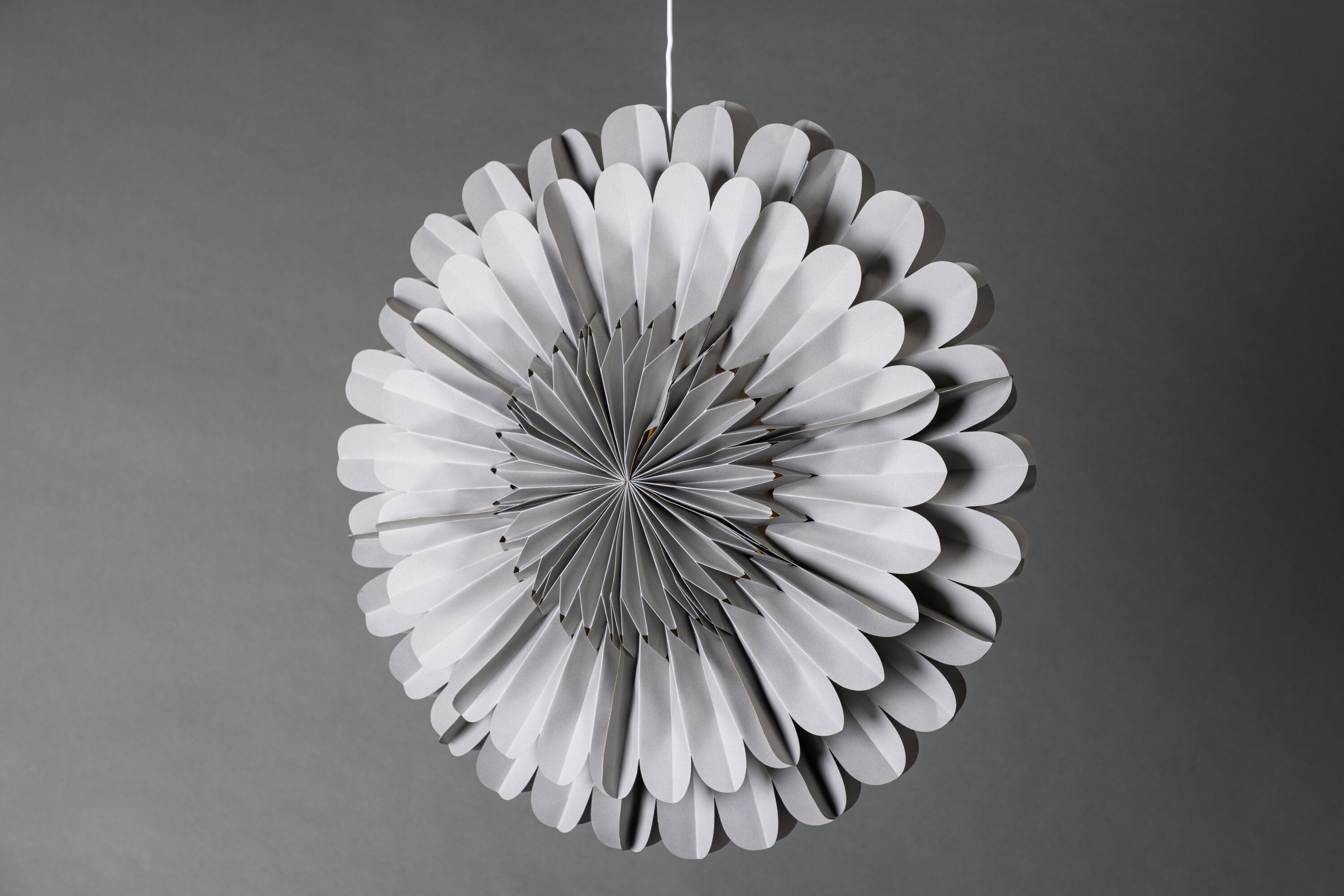 Schaffen Sie ein stimmungsvolles und persönliches Ambiente in Ihrem Zuhause mit der Deckenleuchte aus der Serie Järvsön, dem fantastischen grauen Papierstern, der ein Gefühl von Wärme und Gemütlichkeit in Ihrem Zuhause verbreitet. Diese Deckenleuchte ist nicht nur eine gewöhnliche Beleuchtungslösung; sie ist ein Kunstwerk für sich.