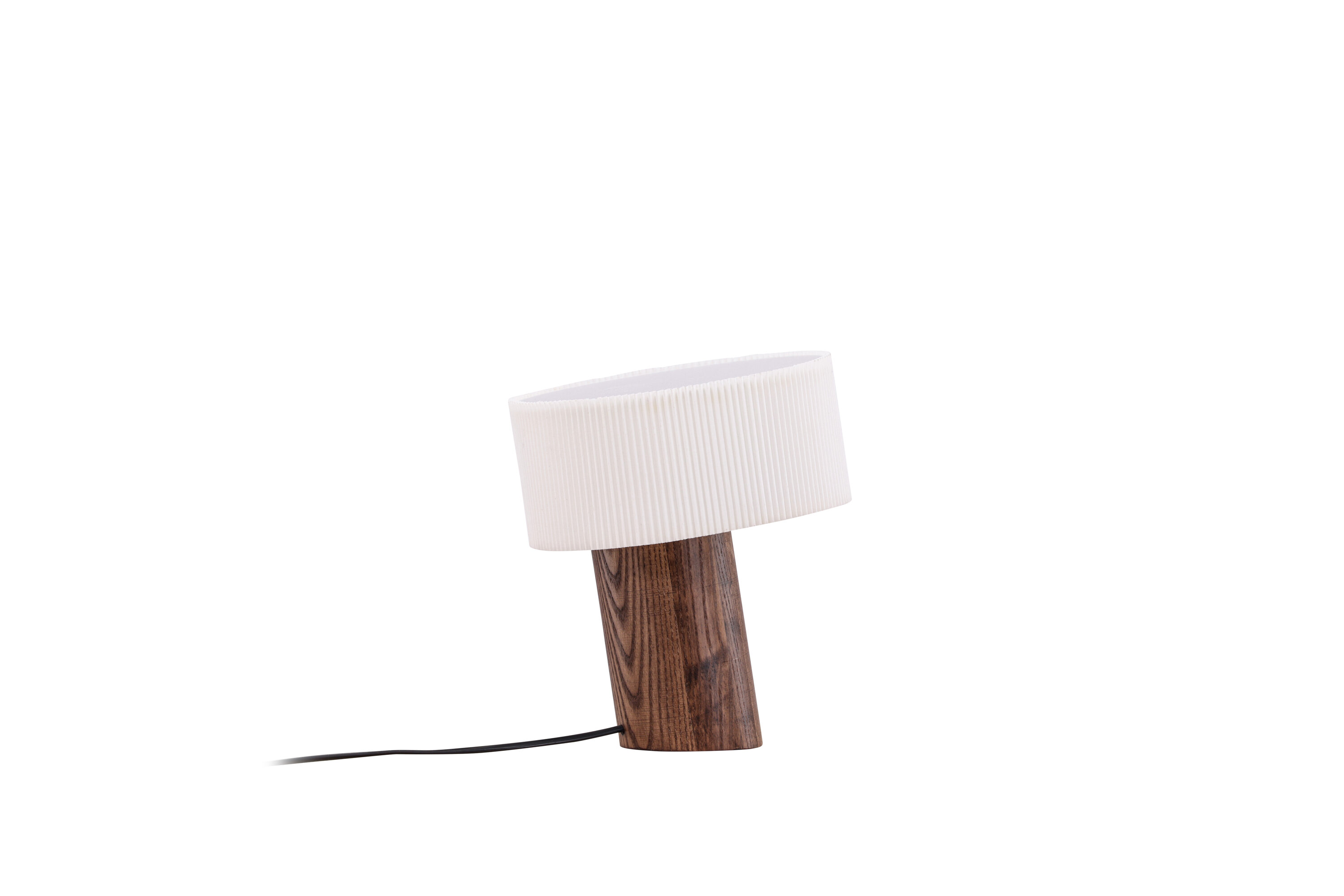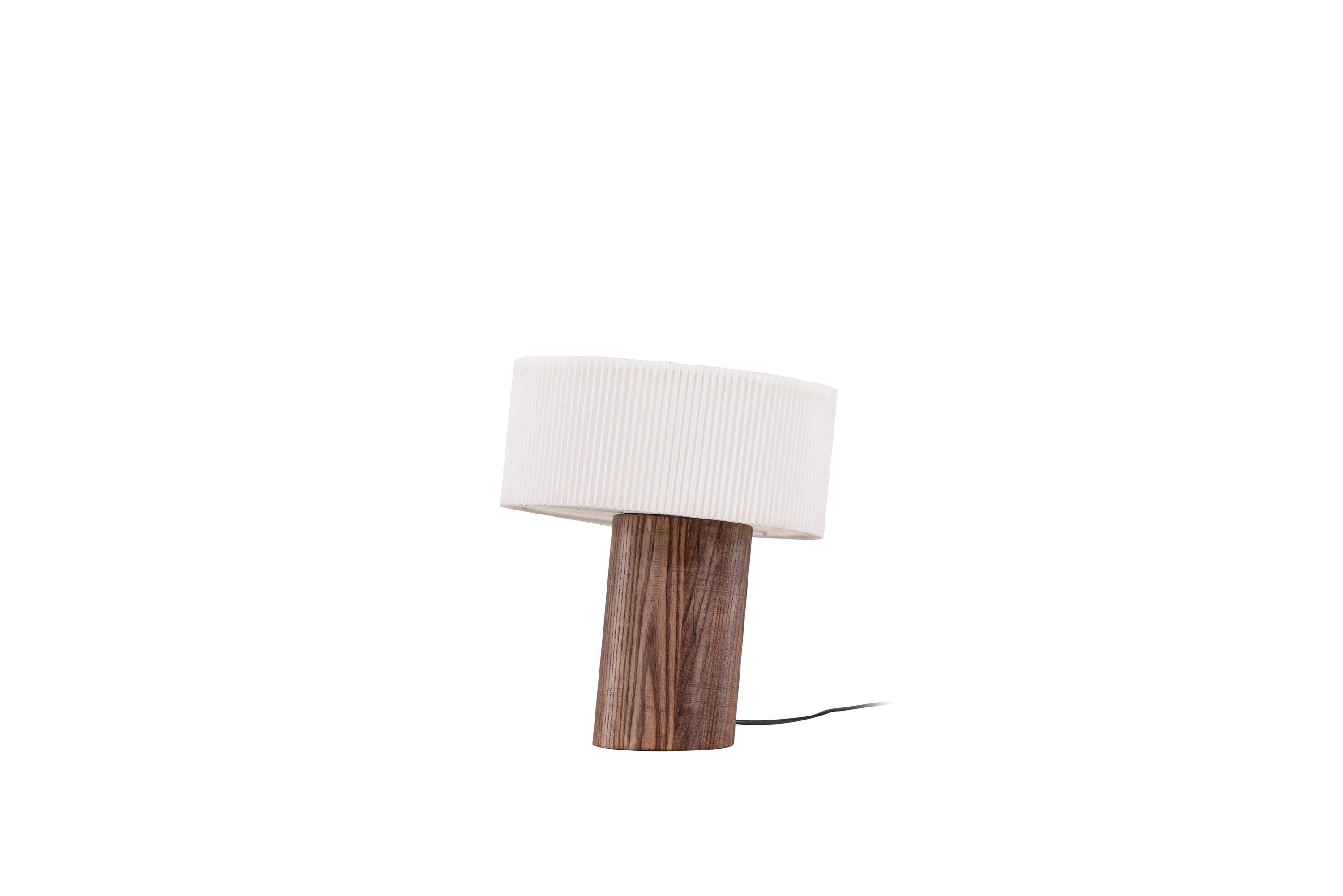 Mit ihrem walnussfarbenen zylindrischen Sockel und einem Lampenschirm aus plissiertem weißem Papier ist diese Lampe ein Meisterwerk modernen Designs. Der schräge Lampensockel ist nicht nur ein stilvolles optisches Detail, sondern auch ein deutliches Zeichen für eine moderne Lampe mit einzigartigem Design. Jedes Detail wurde sorgfältig entworfen, um Ihren Raum in eine modebewusste Oase von Trend und Harmonie zu verwandeln.