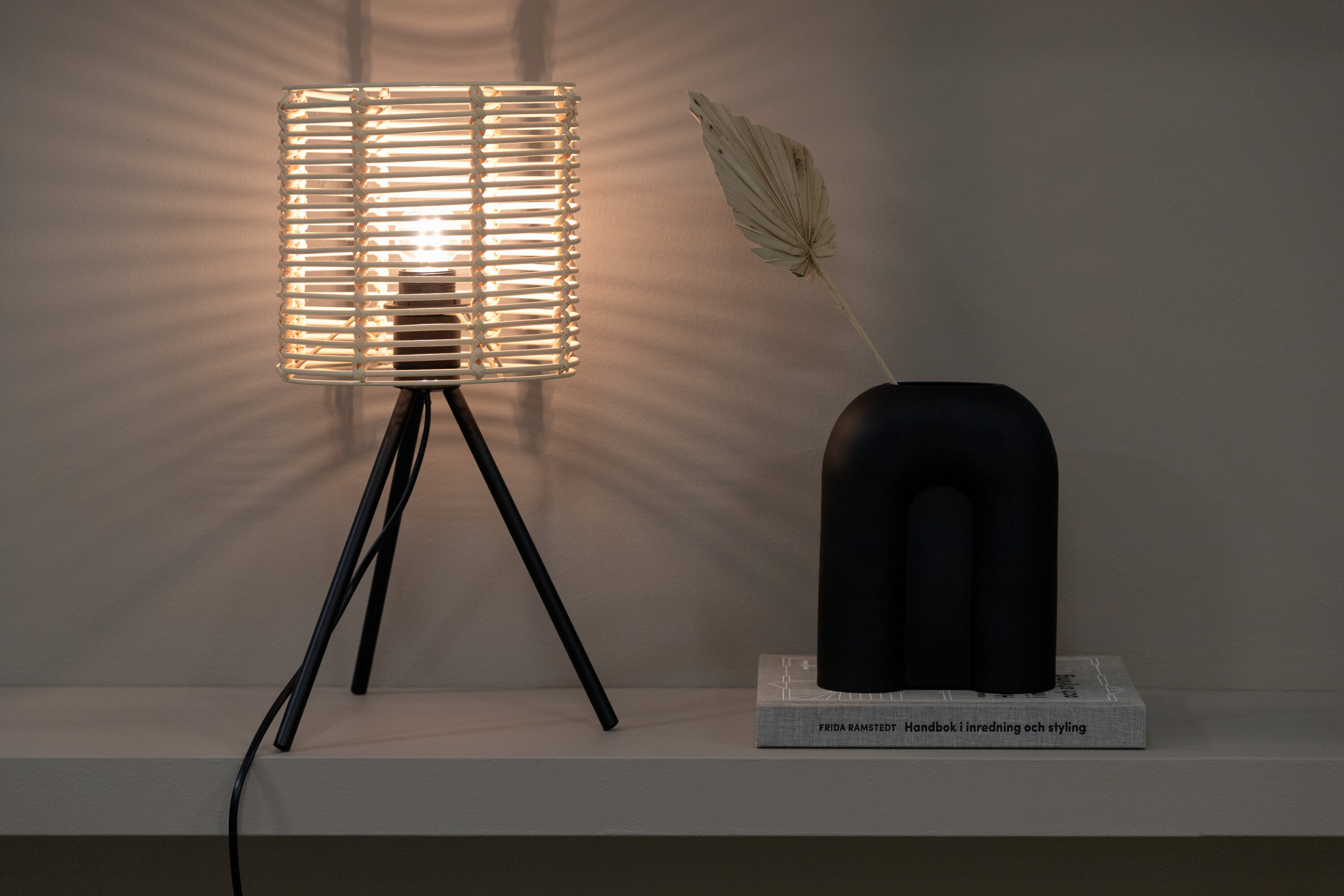Stilvoll, hübsch und zeitlos. Die Tischleuchte Bolloneli passt perfekt auf die kleineren Flächen wie auf den Schreibtisch oder Nachttisch. Das Design ist minimalistisch und zeichnet sich dennoch durch die gepflegten Beine und den angenehmen Bildschirm aus Korbgeflecht aus.