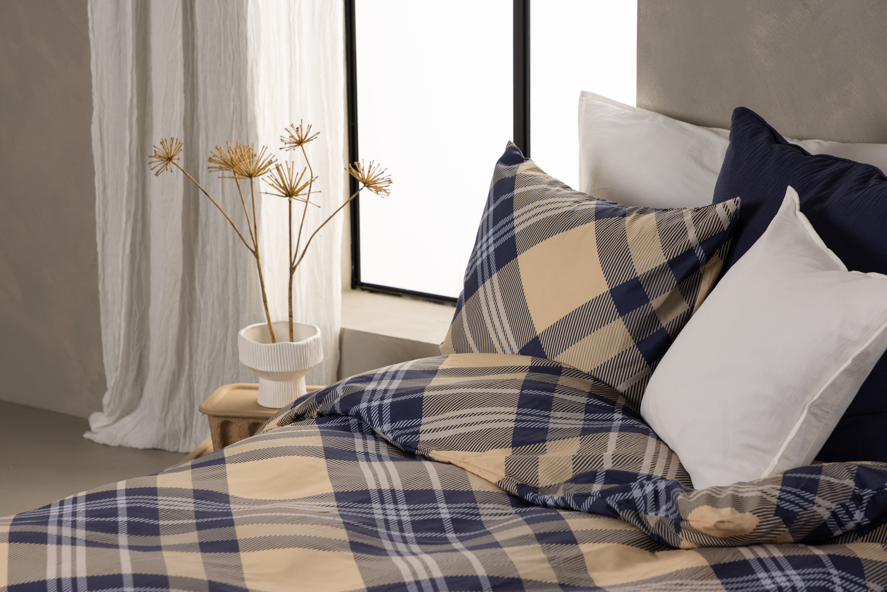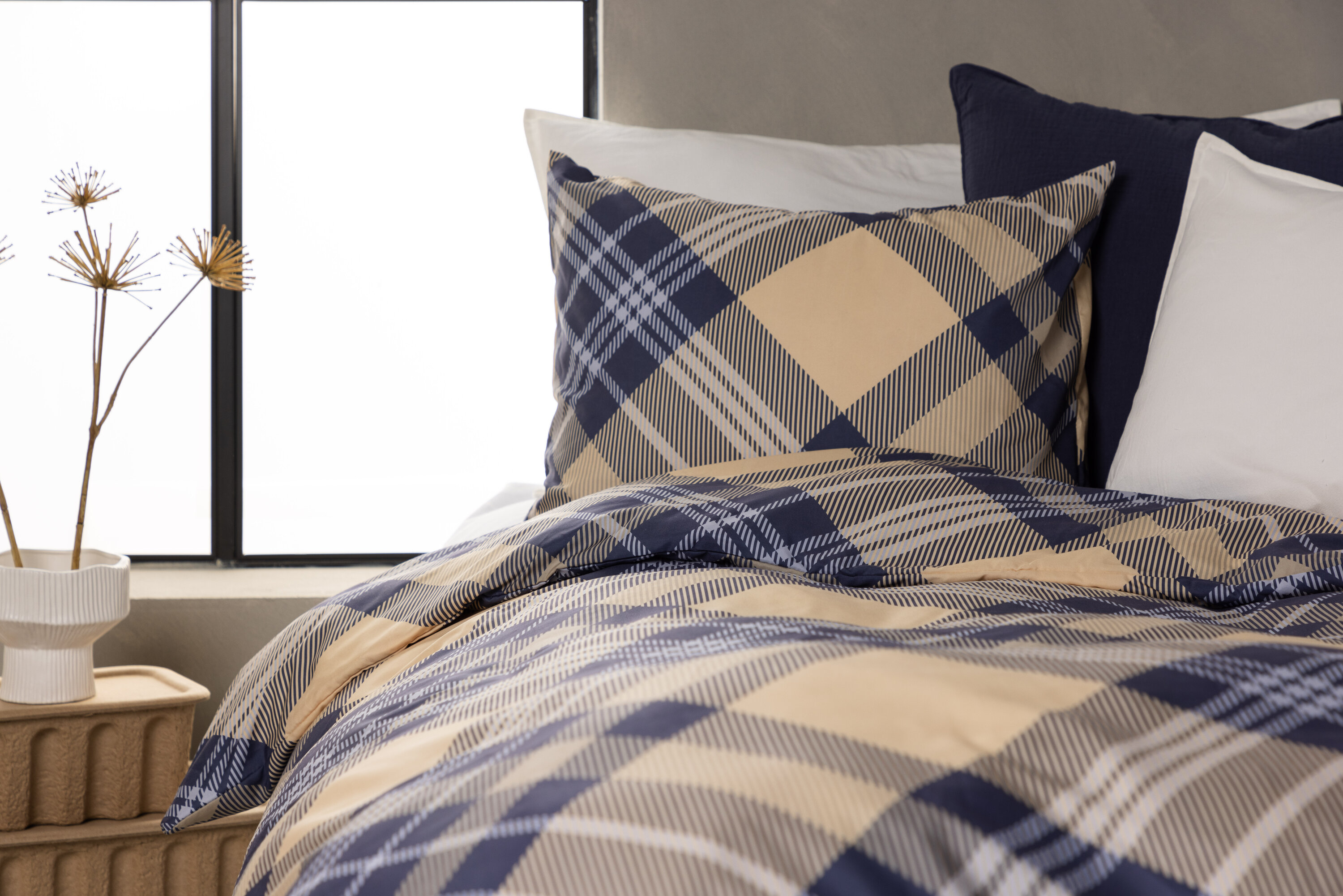 Dieses Bett-Set aus der Aurora-Serie ist genauso kuschelig wie schön zum Schlafen! Polyesterbettwäsche ist waschbar und hat ein luxuriöses Gittermuster in den Farben Blau und Beige, das eine persönliche Note auf dem Bett schafft. Gemütlich, gepflegt und schön - was will man mehr? Bald können Sie auch wie ein Profi mit einem schönen Bett-Set aus der Aurora-Serie schlafen!