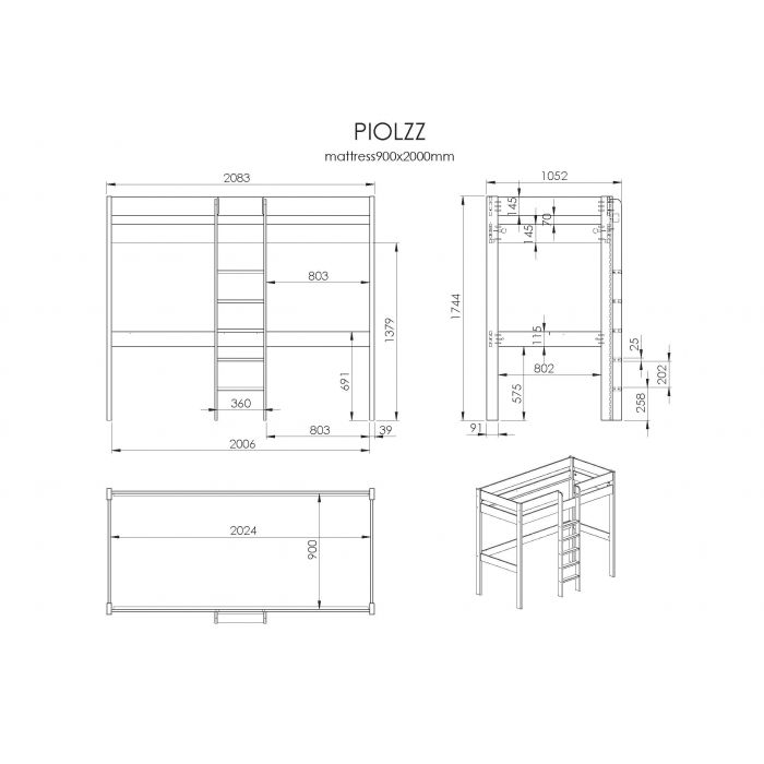 Dieses Hochbett mit 1 Schlafgelegenheit oben und einer Schreibplatte unten ist ideal für das Kinderzimmer. Es hat viel Funktion auf kleinstem Raum und ist aus massiver Kiefer gefertigt, in der Ausführung grau lackiert. Die Liegefläche oben ist jeweils 90 x 200 cm und die Leiter sowie der Rolllattenrost sind inklusive. Die obere Liegefläche hat einen hohen umlaufenden Absturzschutz. Die Leiter ist nur mittig montierbar. Breite Trittstufen für sicheres Hinauf- und Hinabsteigen. Das Bett ist hochwertig verarbeitet und zeichnet sich durch sehr gute Stabilität aus. Unter dem Bett befindet sich eine Schreibplatte, die rechts oder links montiert werden kann (Maße ca.: B: 120 x T: 70 cm) und hinter der Leiter ein Regal. Hier gibt es viel Platz um Schreibutensilien und Bücher unter zu bringen. Für Kinder unter 6 Jahren ist das Bett nicht geeignet. Die Pfostenstärke ist ca. 6,4 x 6,4 cm, die Bettseiten und der Absturzschutz sind 2,0 cm stark. Produktmaße: B: 208 H: 175 T: 105 cm. Die Ware ist zerlegt, zur einfachen Selbstmontage. Max. Matratzenhöhe ca. 15 cm. Für Kinder unter 6 Jahren nicht geeignet. Die Dekoration gehört nicht zum Lieferumfang. FSC®-zertifiziert und nach EN 747-2:2012+A1(2015) gebaut.