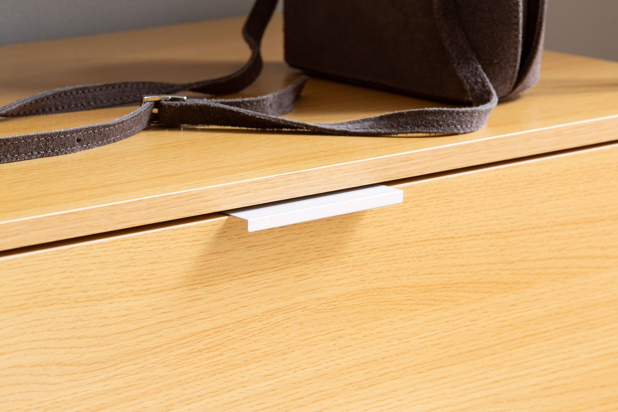 Die Ablagefläche oberhalb der Schubladen ist ideal für Schlüssel oder Dekoration. Anti-Rutsch-Noppen schützen den Boden und die melaminharzbeschichtete Oberfläche ist wasser- und kratzfest für hohe Robustheit.