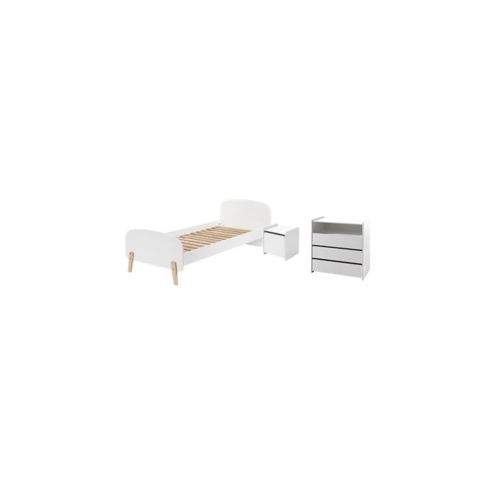Diese KIDDY-Kombination in Weiß besteht aus einem Bett (90x200), einem Nachttisch und einer Kommode.