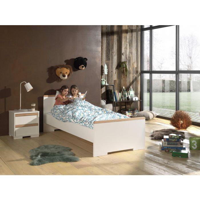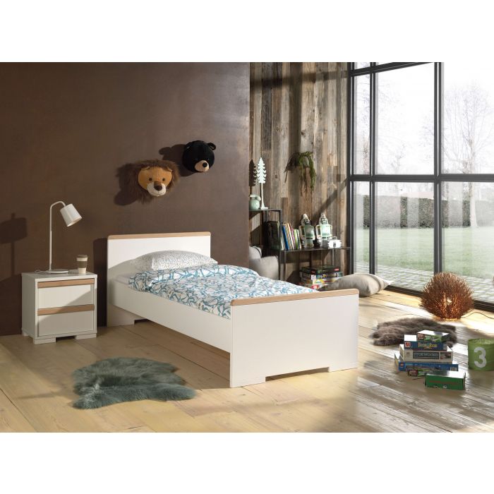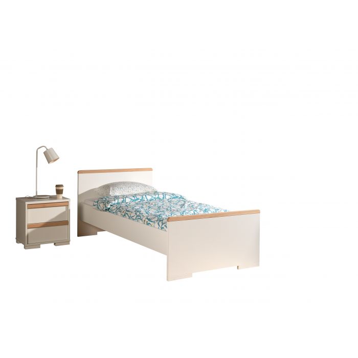 Artikelset LONDON 2-tlg. best. aus: Das Jugendzimmer LONDON zeichnet sich durch das gradlinige Design und die Kombinationsvielfalt der Einzeltypen aus. Es werden geschmackvolle Akzente mit Massivholz gesetzt, die zu einer wohnlichen Atmosphäre beitragen. Der hochwertige Holzwerkstoff als Trägermaterial hat eine pflegeleichte Oberfläche in Dekor Farbe Weiß. Die eingesetzten Materialstärken (ca. 25 mm) bieten eine solide Verarbeitung, Stabilität und Standfestigkeit. Das Einzelbett hat eine Liegefläche von 90 x 200 cm und ist mit seinen vier Auflagewinkeln ausschließlich für einen festen Lattenrost geeignet. Den Abschluss beim Kopf- (Höhe ca. 76,1 cm) und Fußteil (Höhe ca. 52 cm) bildet jeweils eine Leiste aus massiver Buche in Ausf. natur. Die Bodenfreiheit beträgt seitlich ca. 20 cm, am Kopf- und Fußteil jeweils ca. 3,6 cm. Die Bettseitenhöhe ist ca. 20 cm und bietet eine Einlegetiefe für Rahmen und Matratze von ca. 19 cm. Stellfläche Einzelbett ca.: B: 205 x H: 76,1 x T: 97 cm. Die Nachtkonsole hat zwei geräumige Schubladen mit Selbsteinzug. Jede Schublade hat einen Griff in Buche massiv auf der Front. Das Schubladen Innenmaß ist ca. B: 37 x H: 14 x T: 30 cm. Der Abstand zum Boden beträgt ca. 3,6 cm. Stellfläche Nachtkonsole ca.: B: 48,1 x H: 48,8 x T: 40 cm. Die Dekoration, Bettwäsche, Lattenrost und Matratze gehören nicht zum Lieferumfang. Der Artikel wird zerlegt geliefert, mit Aufbauanleitung zur einfachen Selbstmontage.
