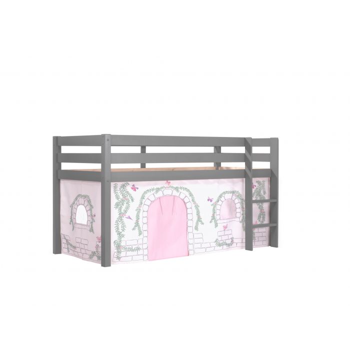 Dieses Hochbett läd zum Spielen und Schlafen ein. Es ist aus massiver Kiefer gefertigt und in der Ausführung grau lackiert. Das Textilset in dem Design "Birdy" mit seiner verspielt romatischen Optik, besteht aus dem Vorhang, gehört mit zum Lieferumfang. Die Grundfarbe ist ein heller Beigefarbton, auf dem sich das florale Muster mit Schmetterlingen und Ranken farblich toll absetzt. Der vordere Vorhang hat einen Durchlass, der hochgerollt werden kann. Die Textilien sind 100% Baumwolle, bei 30° waschbar. Der Raum unter der Liegefläche lässt sich prima zum spielen nutzen, oder kann als Stauraum genutzt werden. Die Höhe vom Boden bis Unterkante der Bettseite beträgt ca. 70 cm. Ein Rolllattenrost gehört zum Lieferumfang. Die Leiter ist links oder rechts montierbar. Der umlaufende Absturzschutz, die breiten Trittstufen zum sicheren Hinauf- und Hinabsteigen, sowie die hochwertige Verarbeitung und gute Stabilität, zeichnen diesen Artikel aus. Pfostenstärke ca. 6,4 x 6,4 cm. Die Liegefläche ist 90 x 200 cm. Benötigte Stellfläche ca. 210 x 106 cm. Höhe 114 cm. Der Artikel ist zerlegt mit Aufbauanleitung zur einfachen Selbstmontage. Höhe von der Oberkante der Bettseite bis Oberkante Absturzschutz ca. 36 cm. Max. Matratzenhöhe ca. 20 cm. Für Kinder unter 6 Jahren nicht geeignet. Die Dekoration gehört nicht mit zum Lieferumfang. Die Dekoration gehört nicht zum Lieferumfang. FSC®-zertifiziert und nach EN 747-2:2012+A1(2015) gebaut.