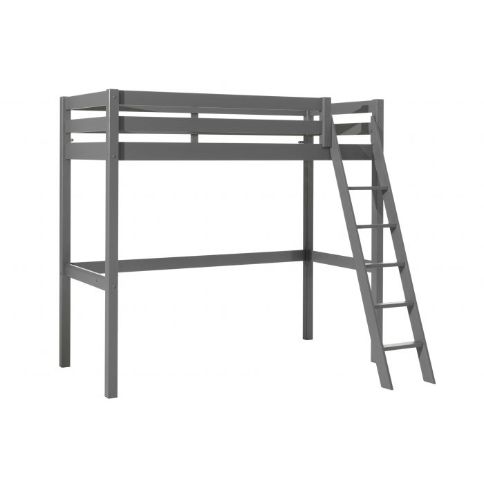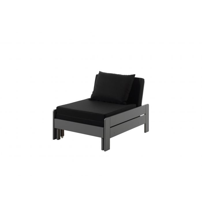 Dieses Hochbett mit 1 Schlafgelegenheit oben ist ideal für das Kinderzimmer oder die Studentenwohnung. Es hat viel Funktion auf kleinstem Raum und ist aus massiver Kiefer gefertigt, in der Ausführung grau lackiert. Die Liegefläche oben ist jeweils 90 x 200 cm und die Leiter sowie der Rolllattenrost sind inklusive. Die obere Liegefläche hat einen hohen umlaufenden Absturzschutz. Die Leiter verläuft schräg und ist links oder rechts montierbar. Breite Trittstufen für sicheres Hinauf- und Hinabsteigen. Die lichte Höhe unter dem Bett ist ca. 145 cm. Der praktische Sessel mit Sitzkissen, der zum Sesselbett umfunktioniert werden kann, gehört auch zum Lieferumfang. Er ist aus massiver Kiefer gefertigt und grau lackiert. Die Kanten sind gerundet und durch einfaches Ausziehen, lässt sich eine Liegefläche im Maß ca. 76 x 190 cm erzeugen. Der Lattenrost ist bereits im Lieferumfang inklusive. Das Sitzkissen gehört ebenfalls dazu und wird einfach nach vorne ausgeklappt, es dient gleichzeitig als Matratze. Der Stoff ist in Farbe schwarz, 100% Polyester, abnehmbar und bei 30° als Handwäsche waschbar. Produktmaße Sessel: B: 80 H: 68 T: 85 cm, die Tiefe ausgezogen ist 206 cm. Gerade in kleinen Räumlichkeiten ist diese zweite Schlafgelegeheit ein echter Vorteil. Das Bett ist hochwertig verarbeitet und zeichnet sich durch sehr gute Stabilität aus. Die Pfostenstärke ist ca. 6,4 x 6,4 cm, die Bettseiten und der Absturzschutz sind 2,0 cm stark. Produktmaße: B: 209 H: 190 T: 165 cm. Die Ware ist zerlegt, zur einfachen Selbstmontage. Max. Matratzenhöhe ca. 18,5 cm. Für Kinder unter 6 Jahren nicht geeignet. Die Dekoration gehört nicht zum Lieferumfang. FSC®-zertifiziert und nach EN 747-1 gebaut.