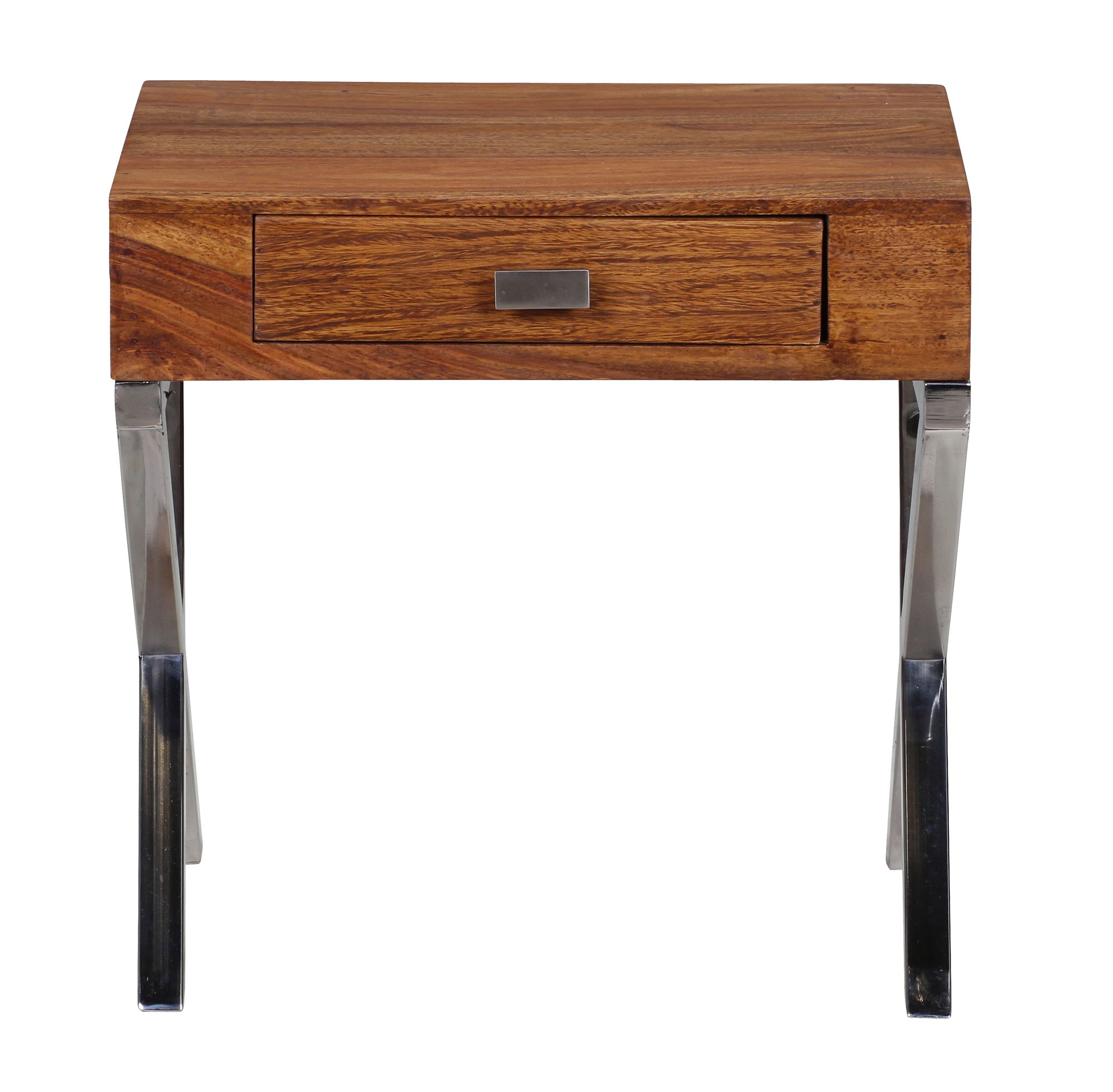 Massivholz Nachttisch Sheesham Dunkelbraun | 45 cm Breite | 1 Schublade, Chrom Metallbeine