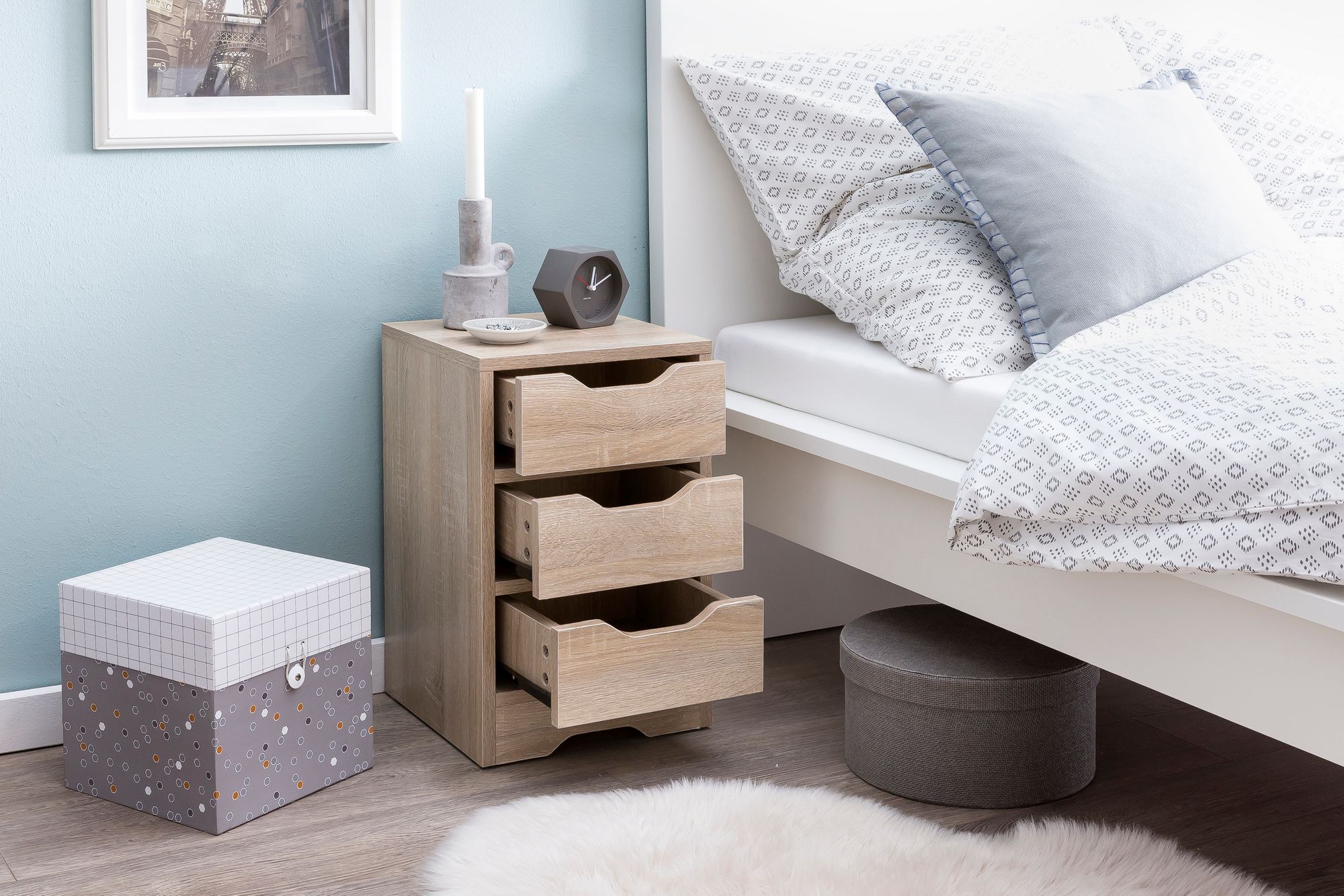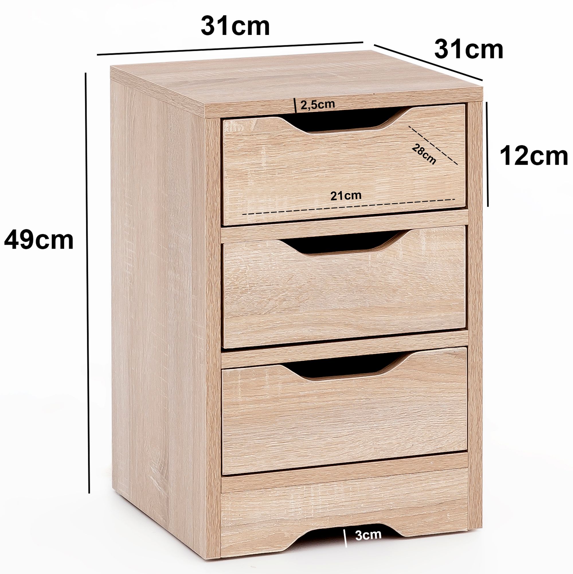- Schubladen: 3 Stück, Innenmaß 21 x 12 x 28 cm