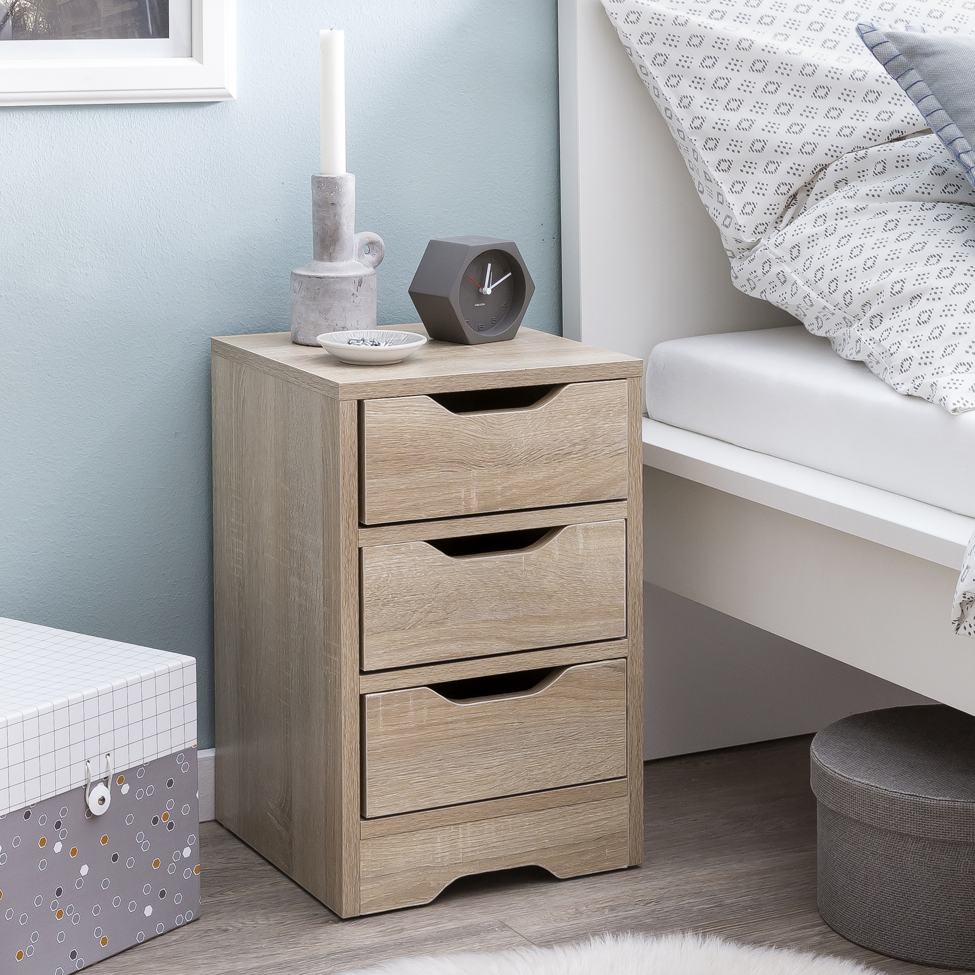 Nachtkonsole Sonoma Braun 31x49x31 cm mit 3 Schubladen | Moderner Nachttisch Schlafzimmer
