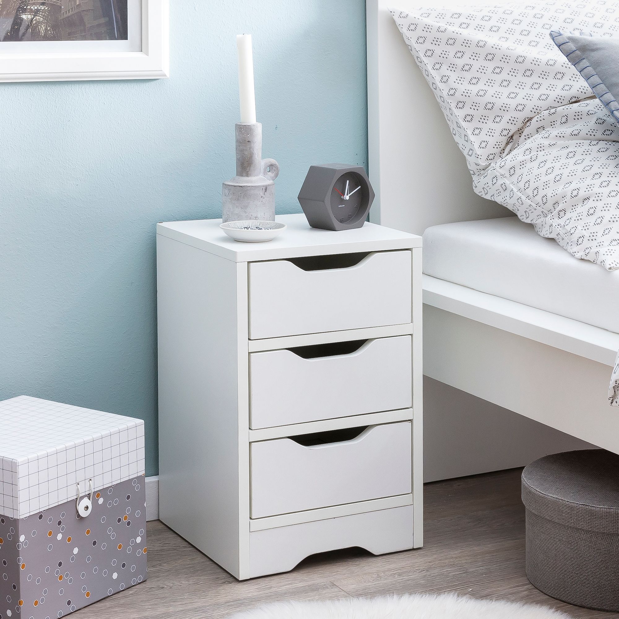 Nachtkonsole Weiß Matt 31x49x31 cm | 3 Schubladen | Moderner und funktionaler Nachttisch