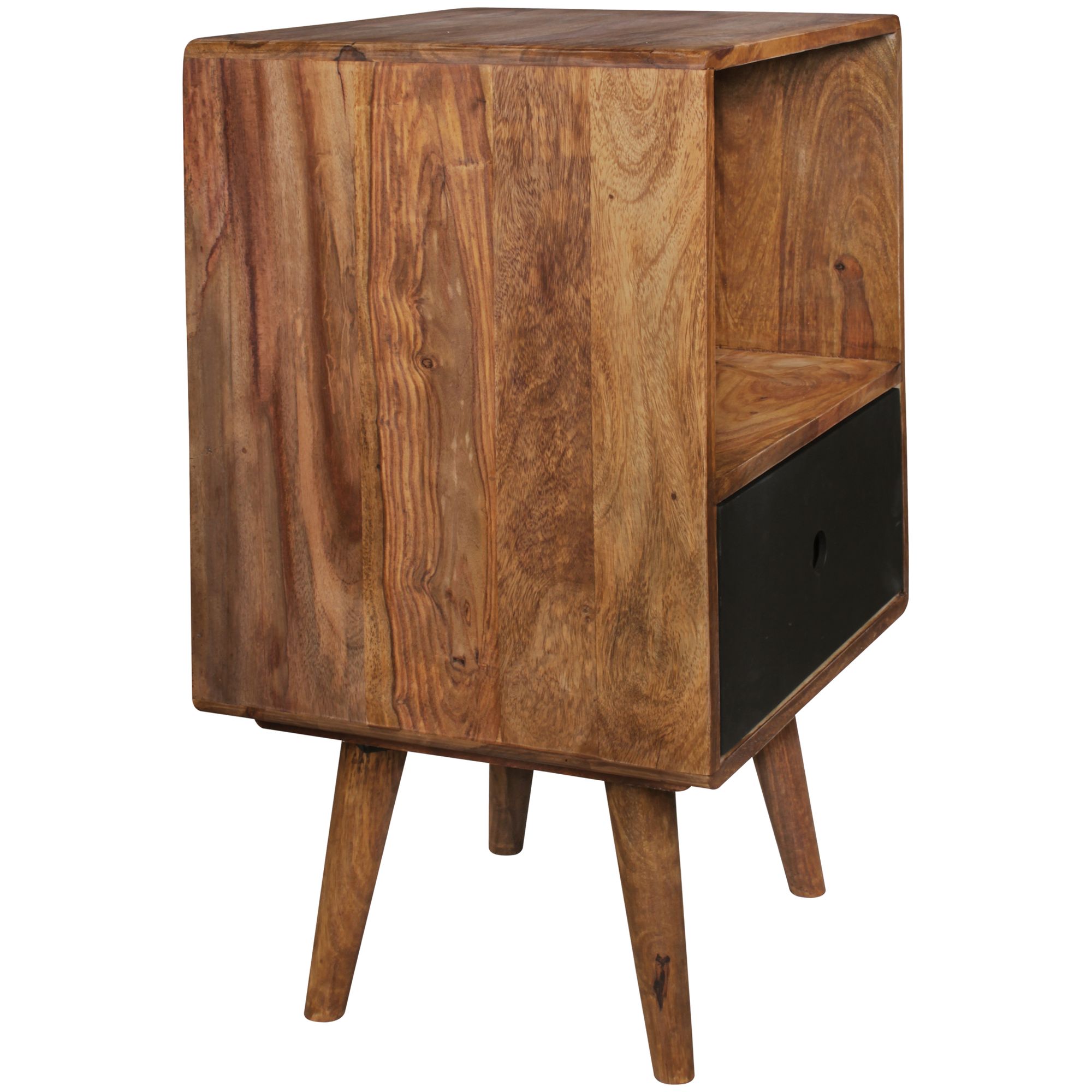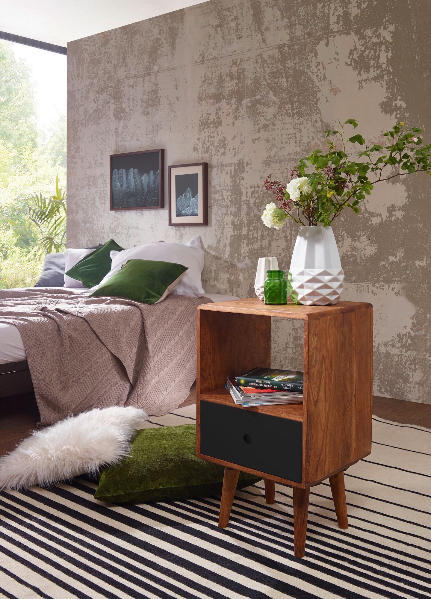 Produktinformationen "Retro Nachtkonsole aus massivem Sheesham-Holz | Holzfarben & Matt Schwarz | 40 x 35 x 70 cm"