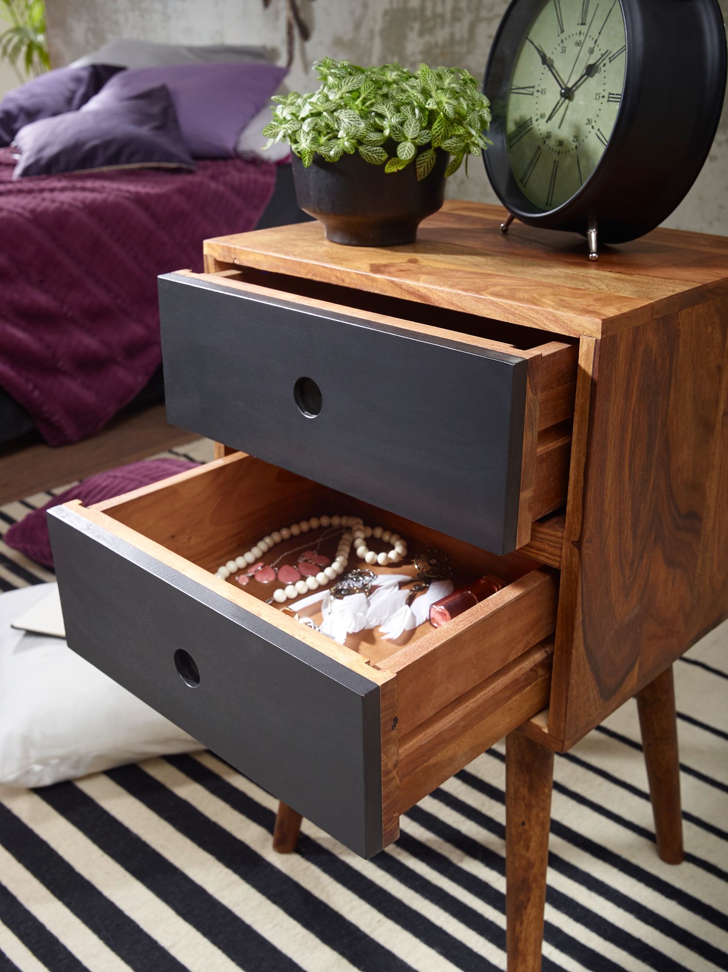 Retro nachtkonsole nachtschrank holz nachtkästchen schlafzimmer braun / schwarz